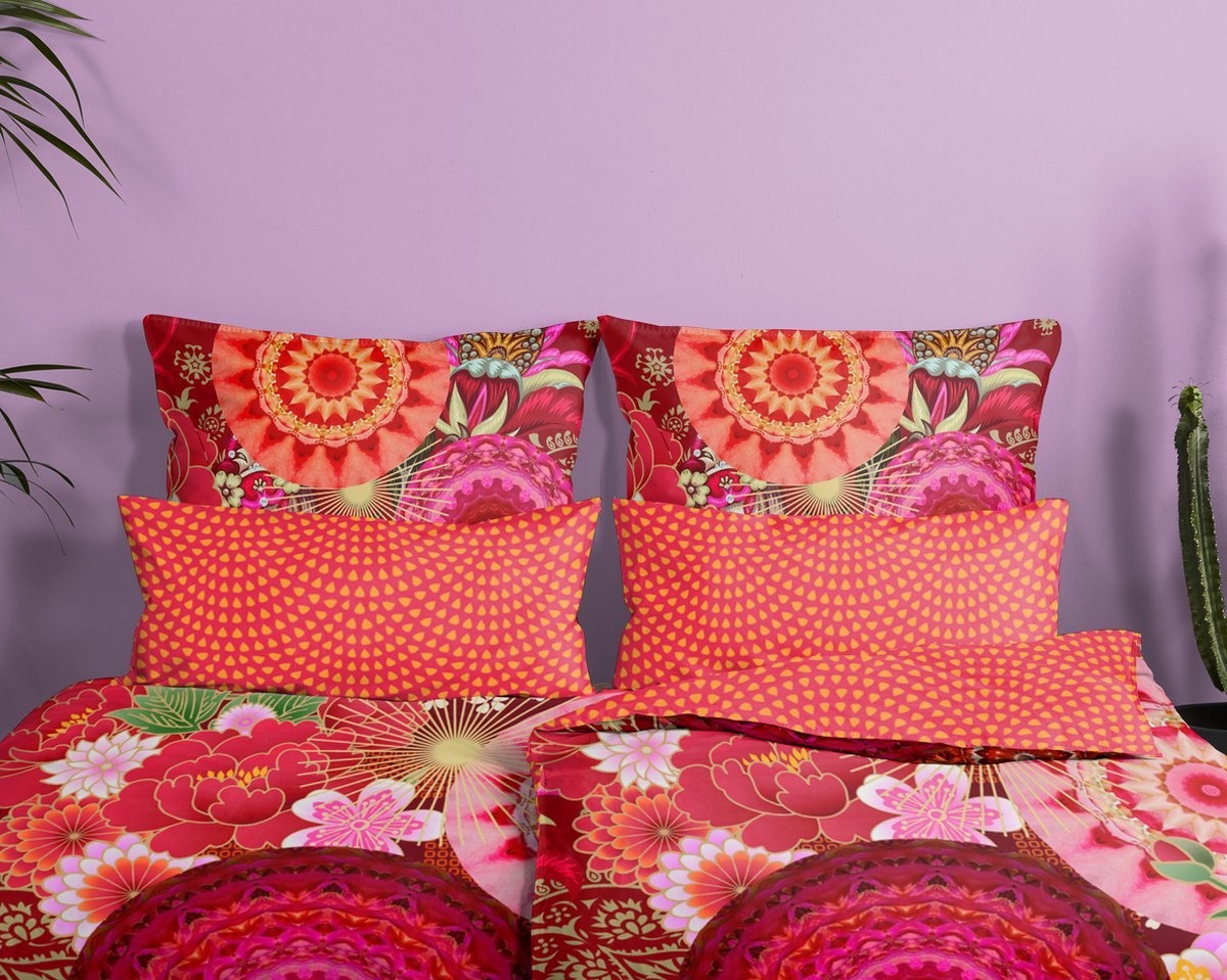 Sierkussenhoezen (Set Van 2) Yuki Rood - 40x80 - Katoensatijn