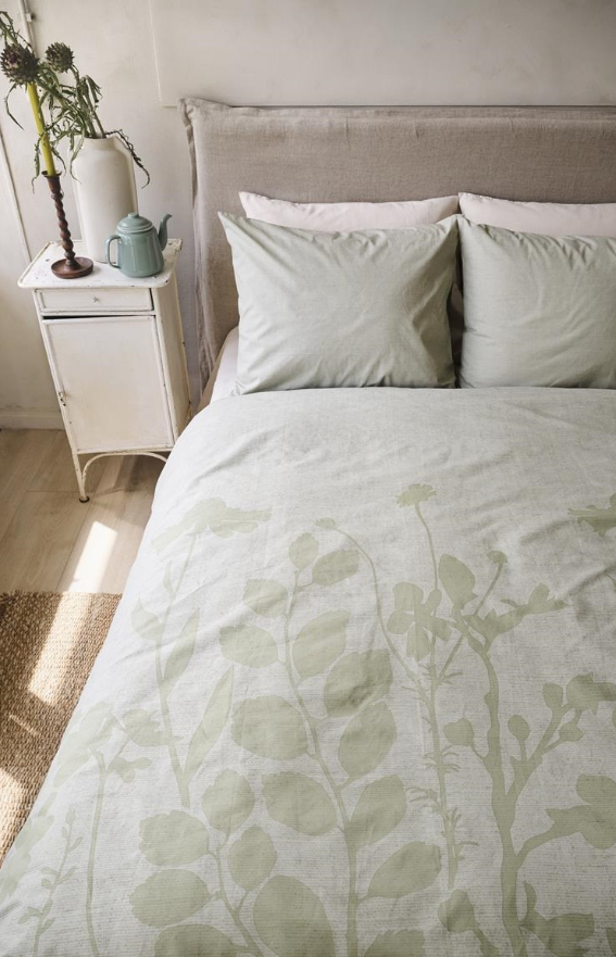 De zachte groentinten en het botanische dessin zorgen voor een rustgevende en stijlvolle uitstraling.