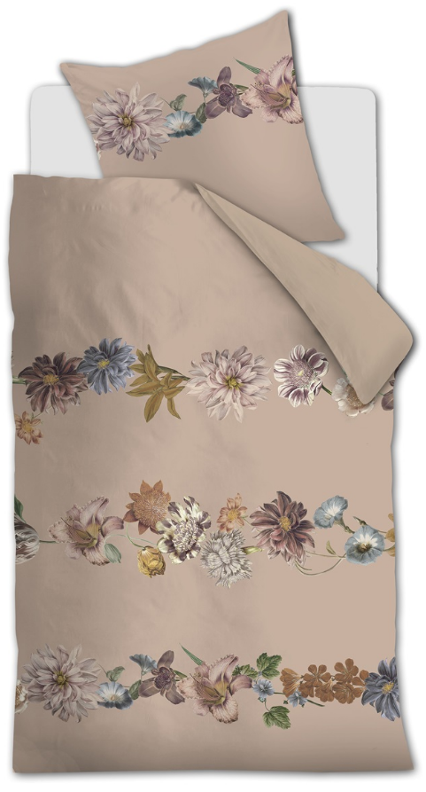 De rustige basiskleur wordt verrijkt door de sierlijke bloemenband, waardoor het overtrek een luxe en verfijnde uitstraling krijgt. Ideaal voor liefhebbers van bloemendessins binnen de collectie At Home dekbedovertrek.