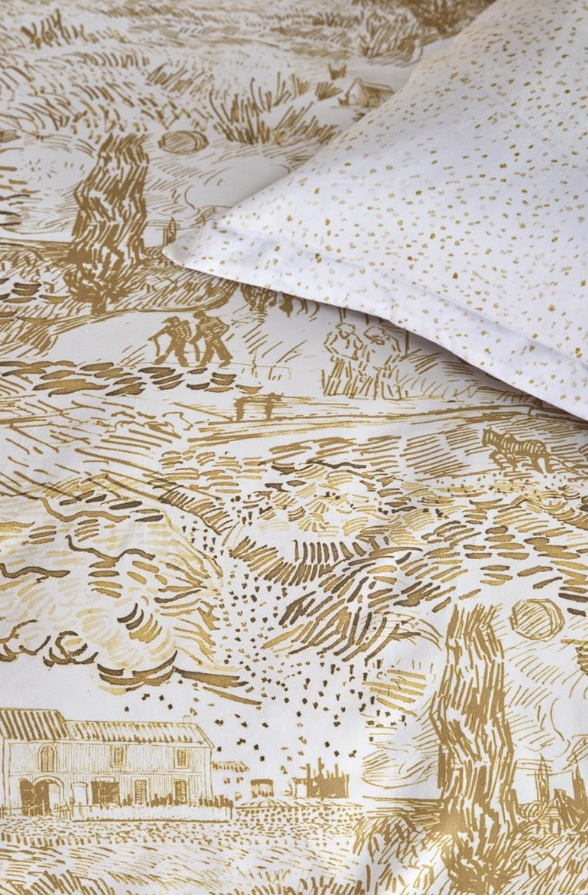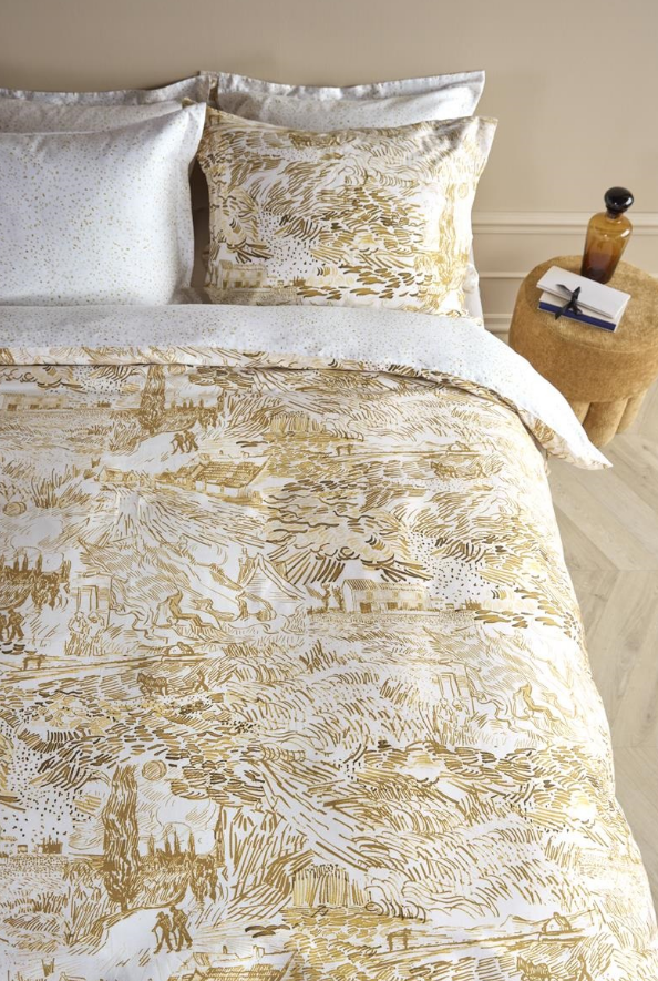 Dekbedovertrek Champs de Semis Oker - Katoensatijn