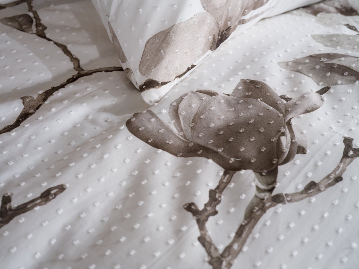 Wat dit dekbedovertrek extra bijzonder maakt, is het gebruik van katoen met clip sheared techniek. Het materiaal is ademend en absorbeert moeiteloos vocht, waardoor je kunt rekenen op een droge en gezonde nachtrust. De natuurlijke zachtheid van katoen zorgt ’s winters voor een aangenaam slaapklimaat. Op warme zomeravonden houdt katoen je lekker fris. Leuk detail is dat dit katoen een clip sheared techniek onderging, waardoor een patroon van textielbolletjes op het dekbedovertrek te zien is, wat zorgt voor een unieke en geraffineerde uitstraling.