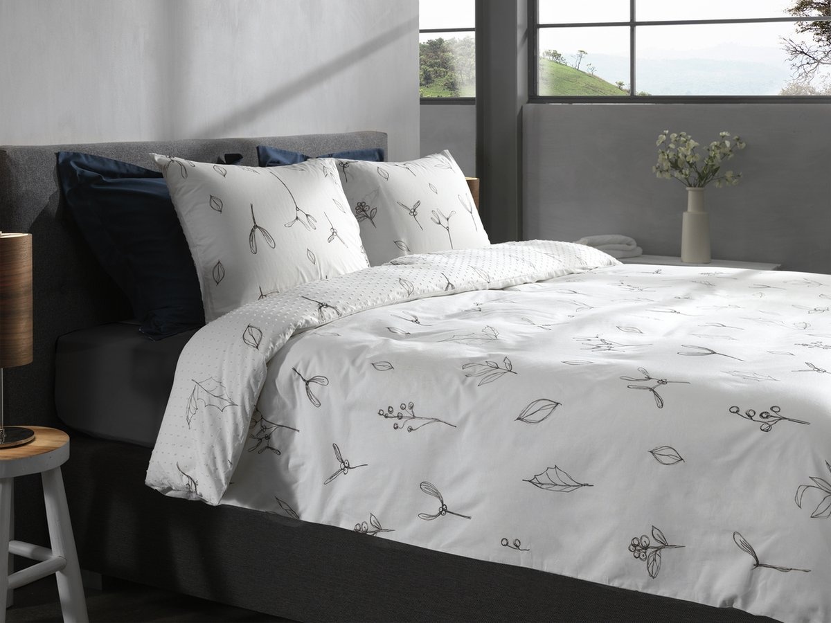 Wat dit dekbedovertrek extra bijzonder maakt, is het gebruik van katoen met clip sheared techniek. Het materiaal is ademend en absorbeert moeiteloos vocht, waardoor je kunt rekenen op een droge en gezonde nachtrust. De natuurlijke zachtheid van katoen zorgt ’s winters voor een aangenaam slaapklimaat. Op warme zomeravonden houdt katoen je lekker fris. Leuk detail is dat dit katoen een clip sheared techniek onderging, waardoor een patroon van textielbolletjes op het dekbedovertrek te zien is, wat zorgt voor een unieke en geraffineerde uitstraling.