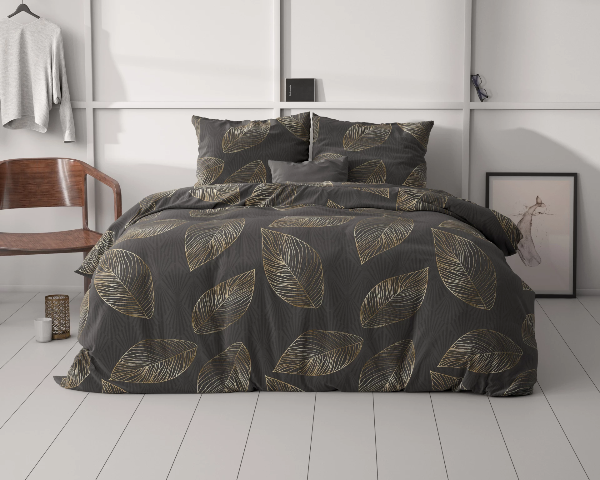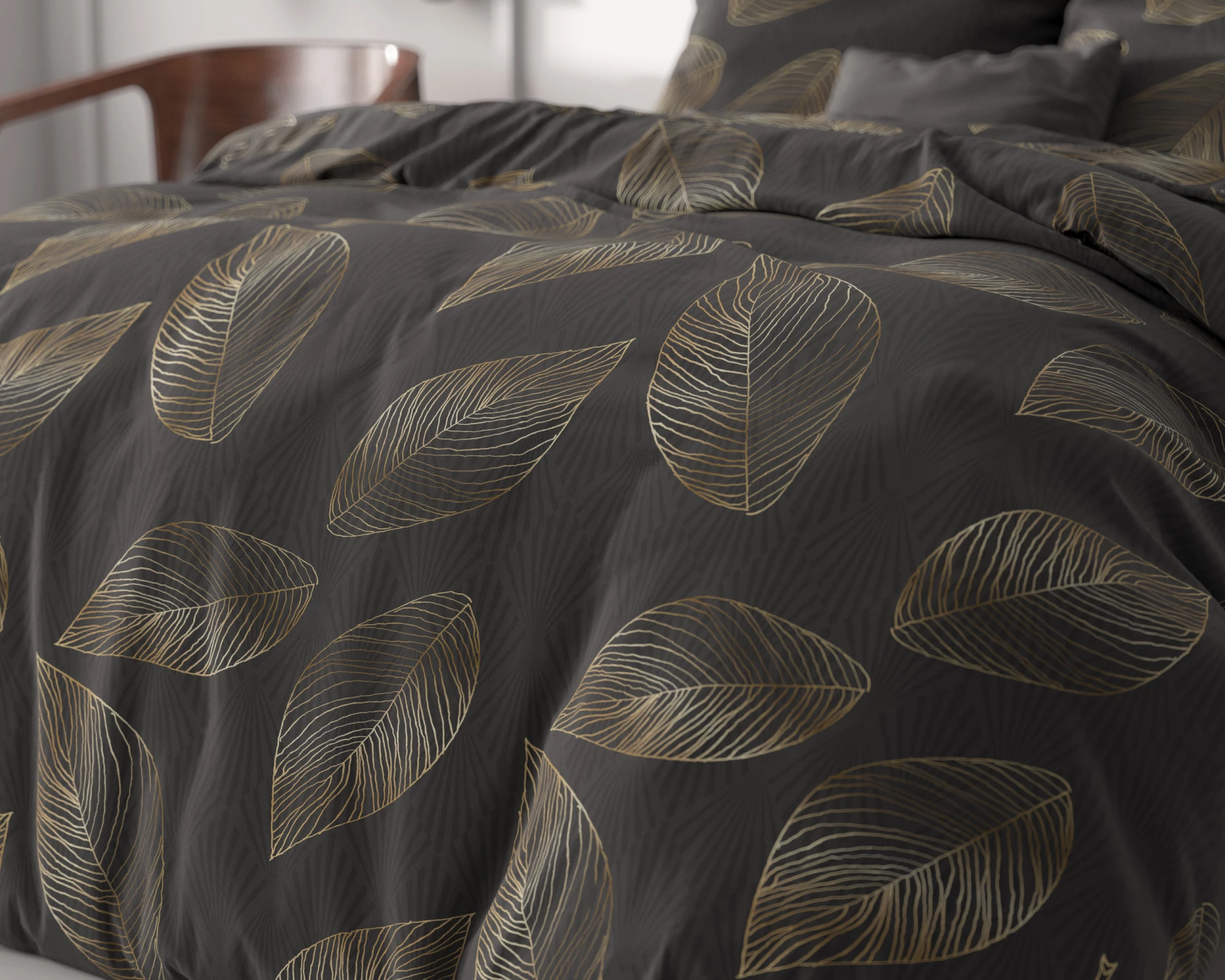 Dekbedovertrek Golden Leaf Antraciet - Microvezel
