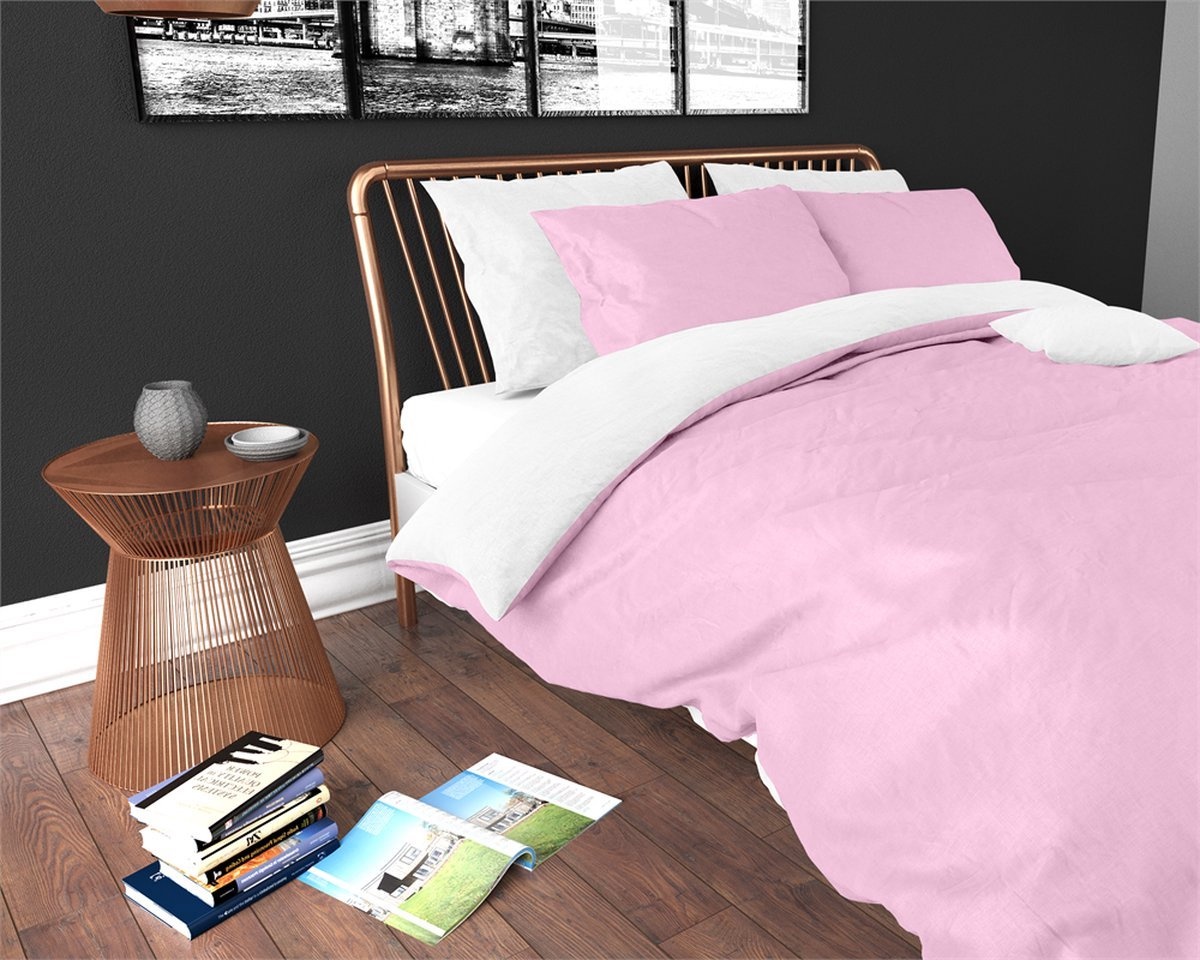 Dekbedovertrek Twin Face Uni Roze/Wit - Microvezel
