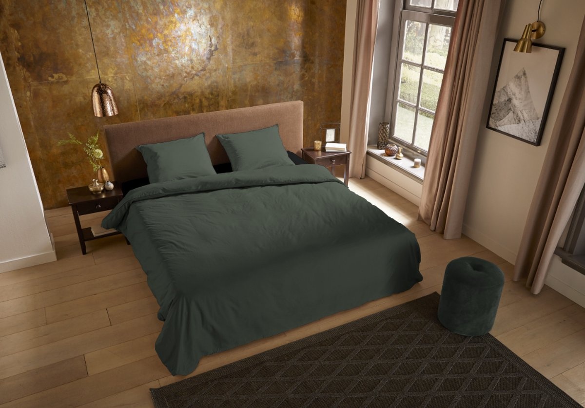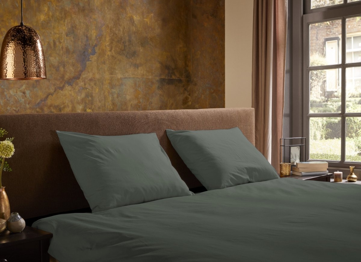 Het Pure Uni Olijf Groen dekbedovertrek combineert een warme, aardse kleur met een strak effen design. Deze tint geeft je slaapkamer een knusse en moderne uitstraling en laat zich prachtig combineren met hout- en natuurtinten.