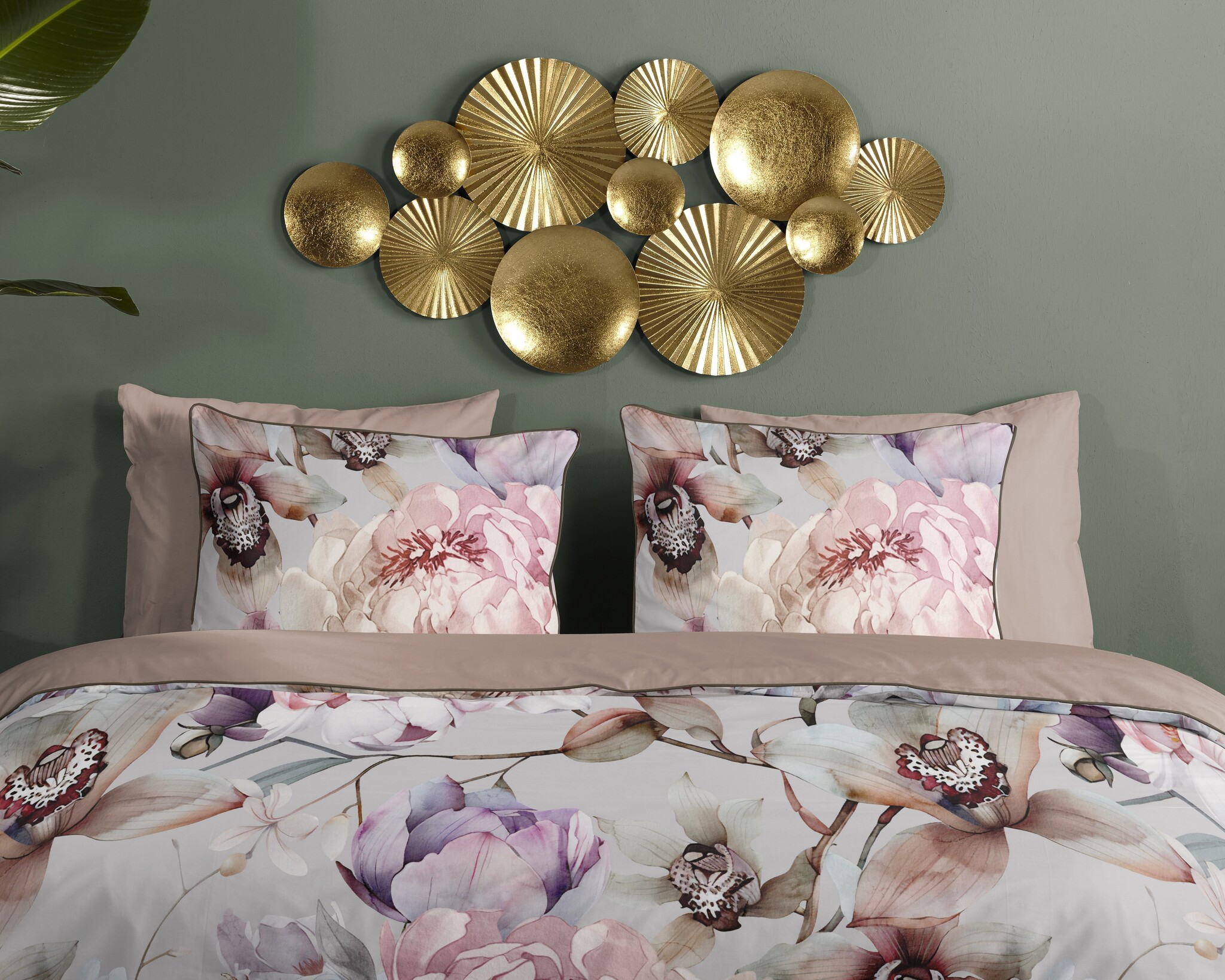 Het Descanso dekbedovertrek Colinda Grijs combineert grote, verfijnde bloemen met subtiele bladeren in zachte grijs-, taupe- en pasteltinten. Het ontwerp straalt rust en klasse uit en geeft de slaapkamer een lichte, elegante uitstraling met een romantisch accent.