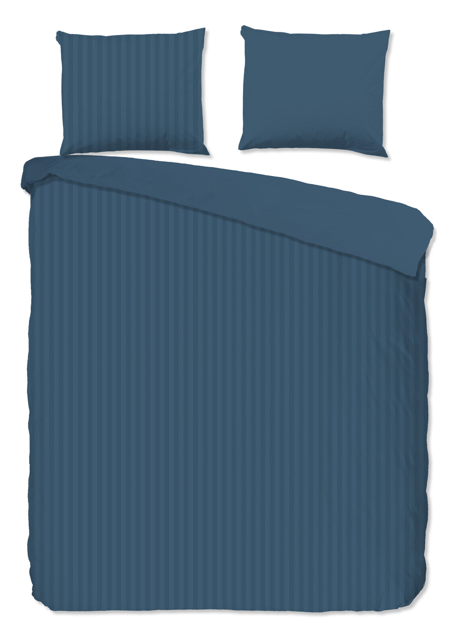 Descanso Dekbedovertrek Hotel Linnen Blauw – Luxe Uni Dessin met Subtiele Streepstructuur