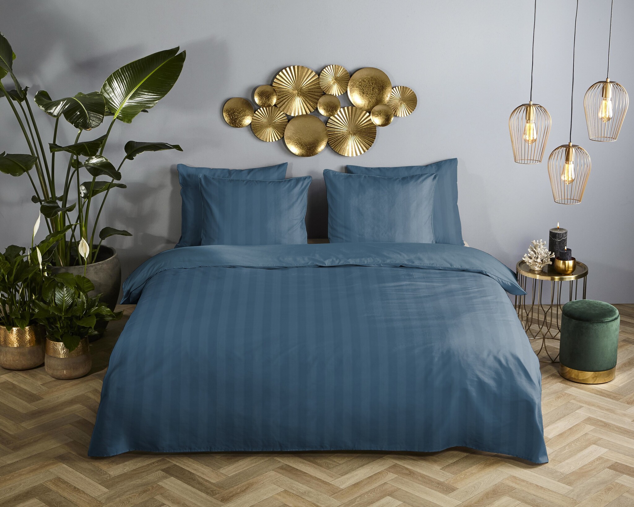 De blauwe tint zorgt voor een kalme en verzorgde sfeer in de slaapkamer en laat zich makkelijk combineren.