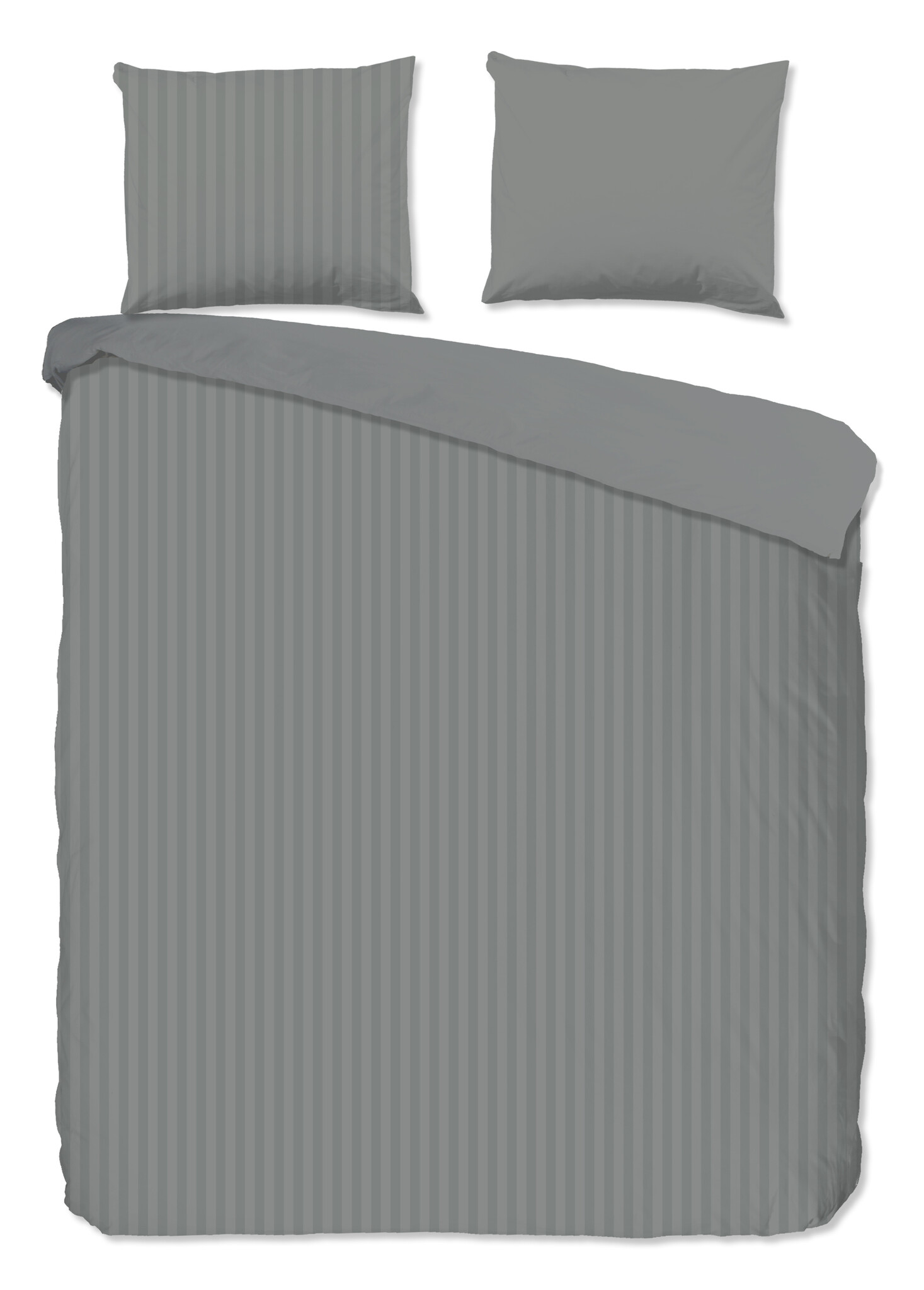 Descanso Dekbedovertrek Hotel Linnen Grijs – Luxe Uni Dessin met Subtiele Streepstructuur