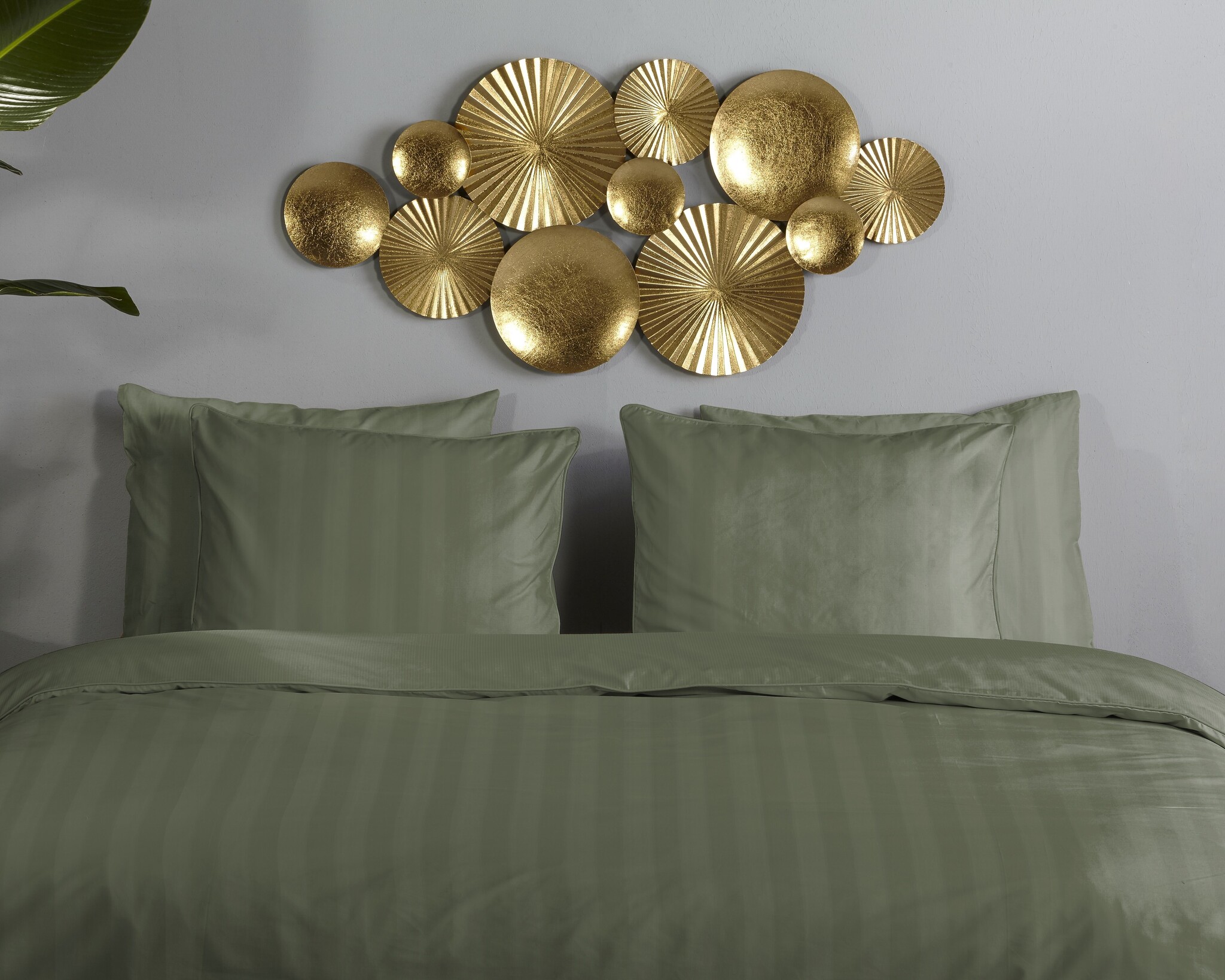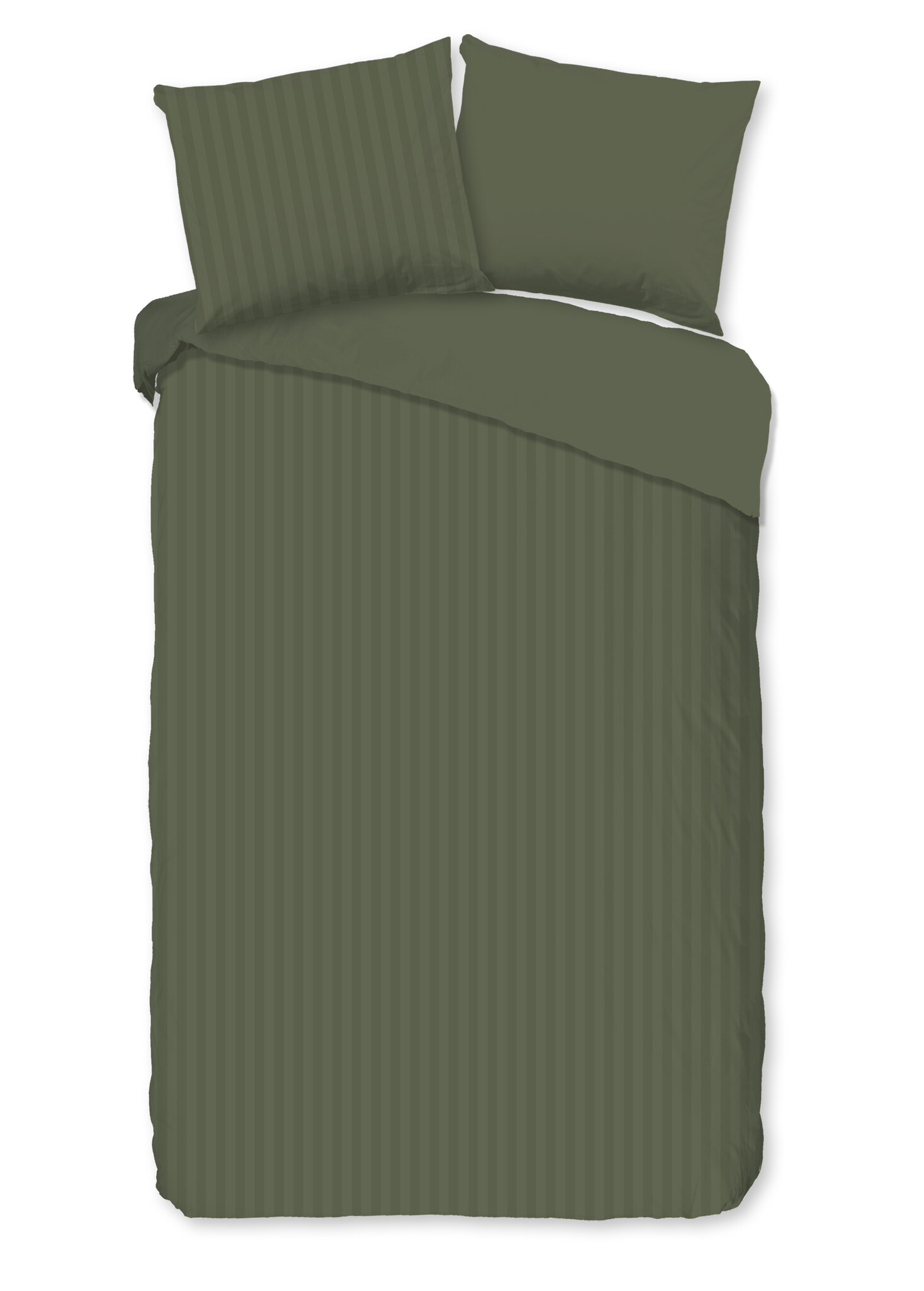 Descanso Dekbedovertrek Hotel Linnen Olijfgroen – Luxe Uni met Subtiele Strepen