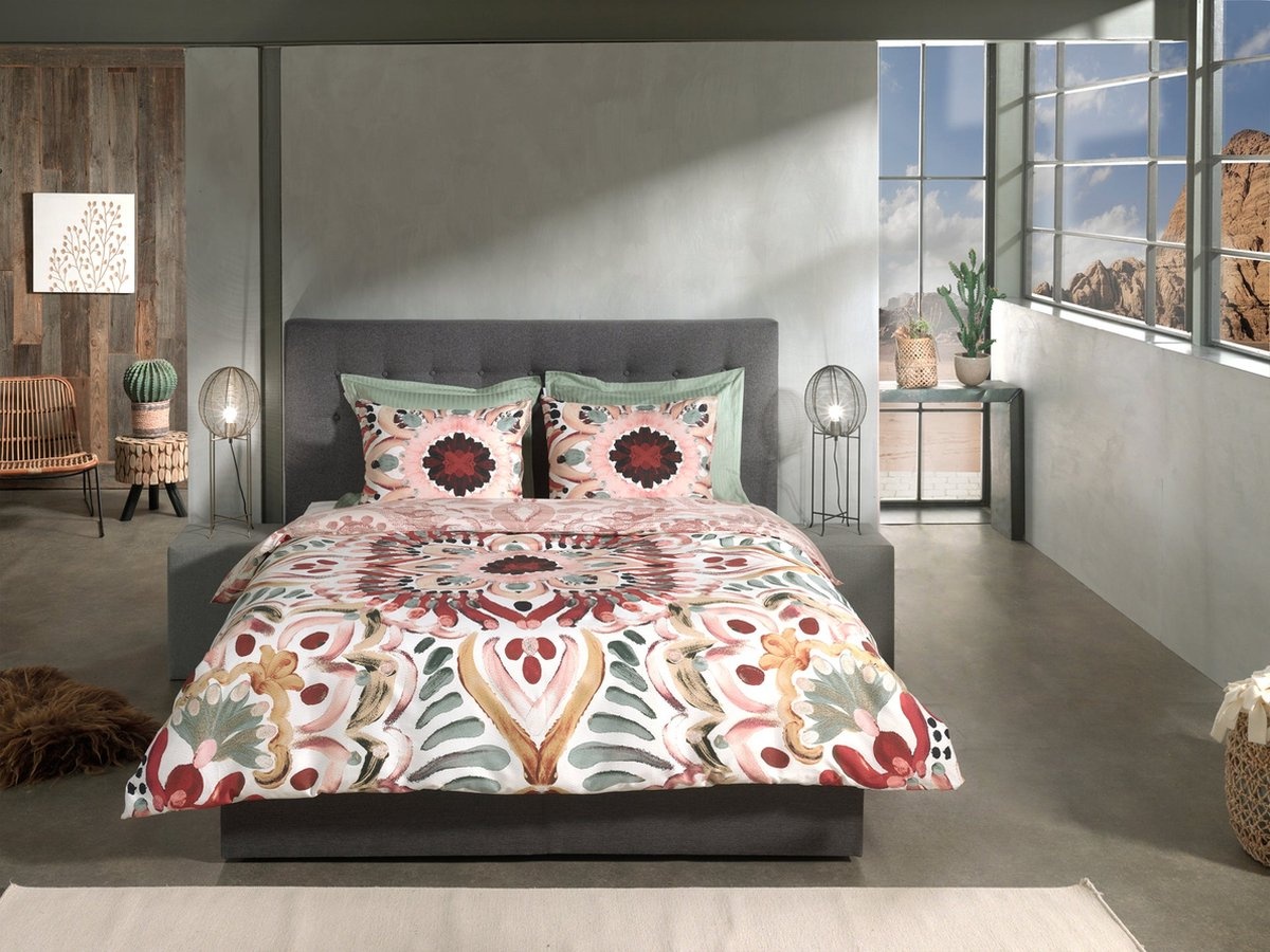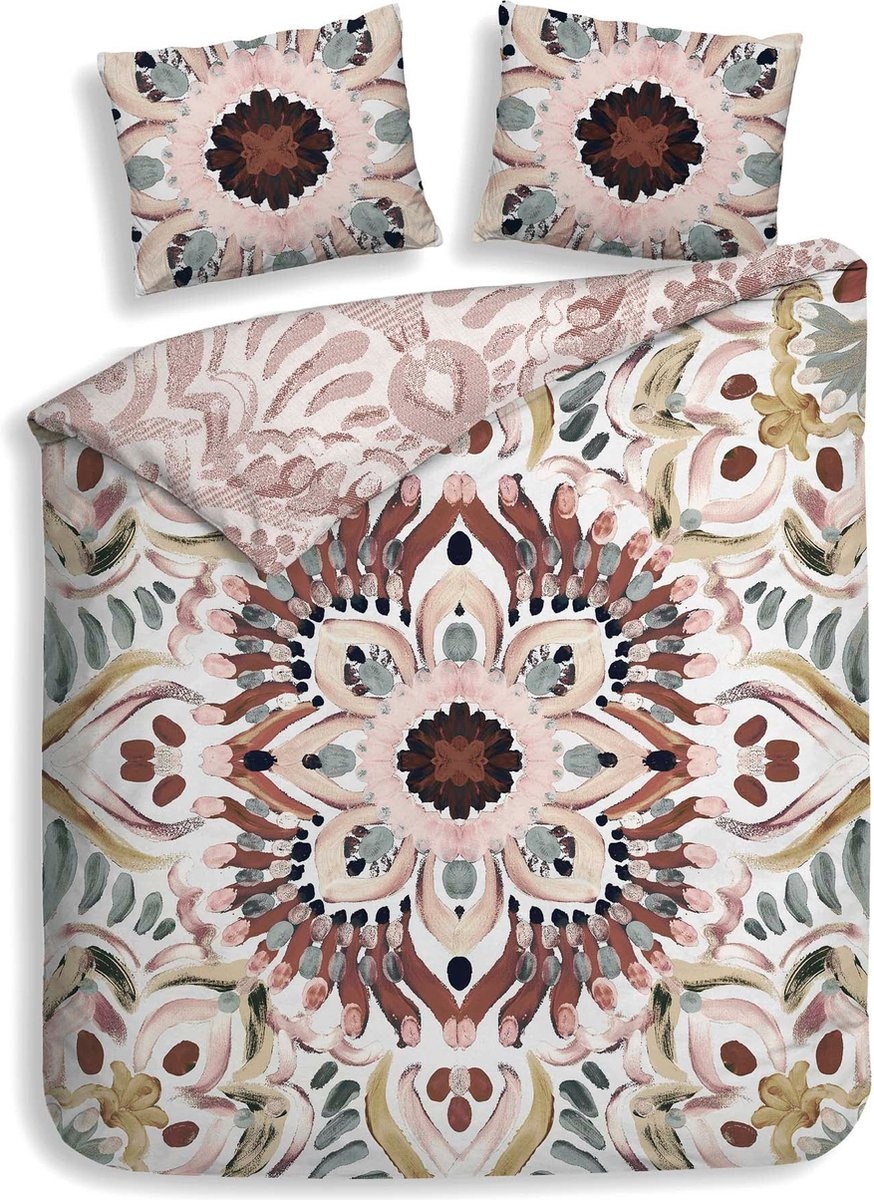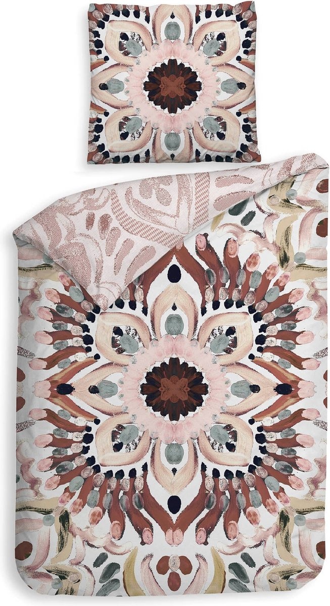 Laat je betoveren door dit bohemien dekbedovertrek, een ware eyecatcher in je slaapkamer! Met een ecru achtergrond vormt dit dekbedovertrek de perfecte basis voor een veelzijdige sfeer. Het mixen van kleuren en patronen geeft een speelse, nonchalante elegantie aan je slaapkamer. Aan de ene kant word je omringd door levendige kleuren in een bohemien print. Keer het dekbedovertrek om, en de sfeer verandert subtiel maar net zo betoverend. De roze tinten op de achterkant brengen een zachte, rustgevende uitstraling met zich mee en voegt een vleugje romantiek toe aan het geheel. Welke kant kies jij vandaag?