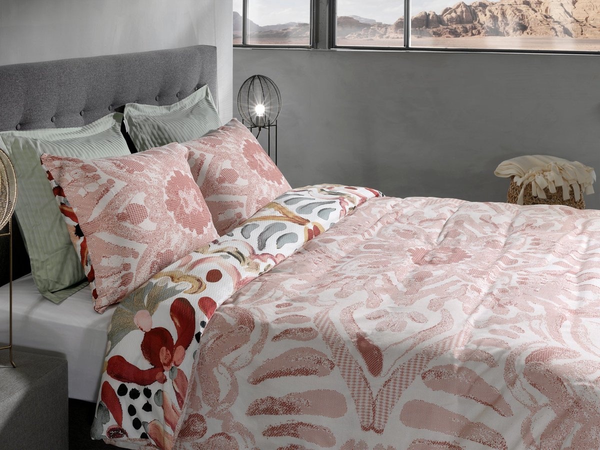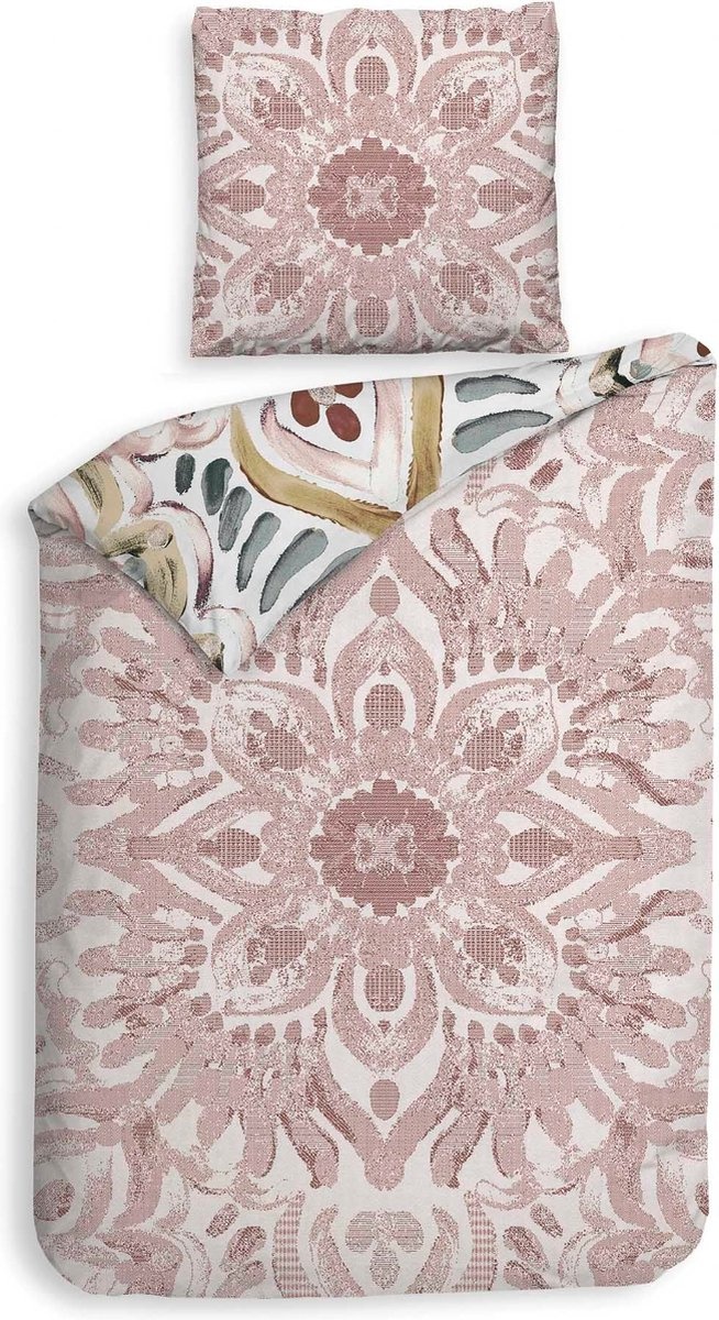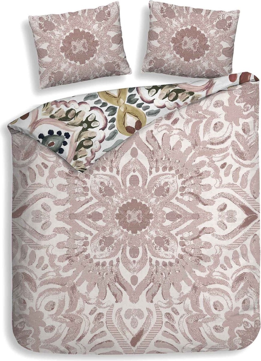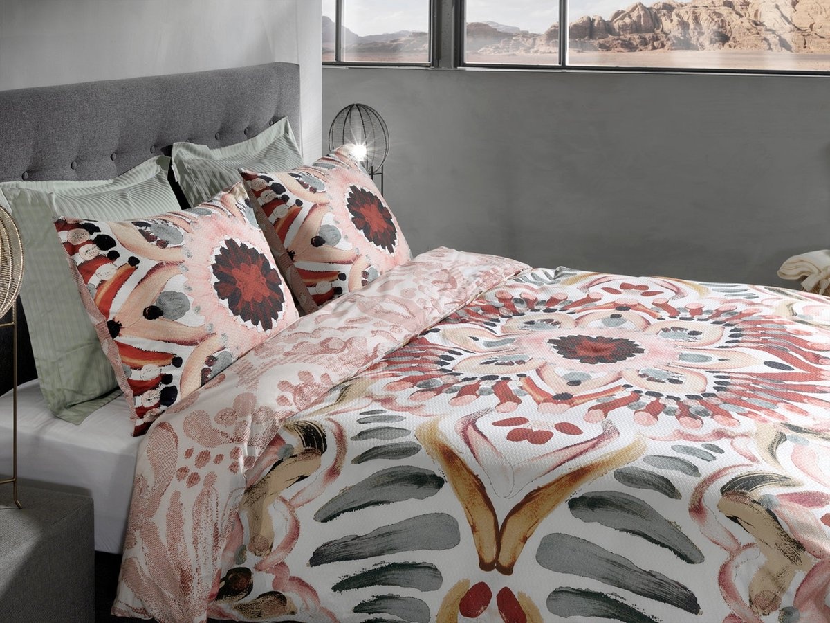 Laat je betoveren door dit bohemien dekbedovertrek, een ware eyecatcher in je slaapkamer! Met een ecru achtergrond vormt dit dekbedovertrek de perfecte basis voor een veelzijdige sfeer. Het mixen van kleuren en patronen geeft een speelse, nonchalante elegantie aan je slaapkamer. Aan de ene kant word je omringd door levendige kleuren in een bohemien print. Keer het dekbedovertrek om, en de sfeer verandert subtiel maar net zo betoverend. De roze tinten op de achterkant brengen een zachte, rustgevende uitstraling met zich mee en voegt een vleugje romantiek toe aan het geheel. Welke kant kies jij vandaag?
