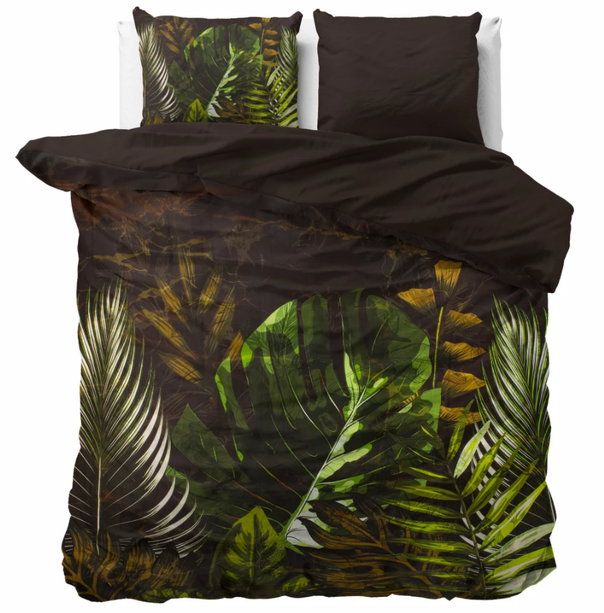 Dreamhouse Jungle Art 2 Taupe Dekbedovertrek – Luxe bladeren dessin in taupe, groen en donkere tinten
