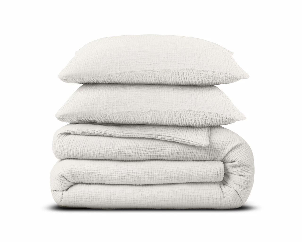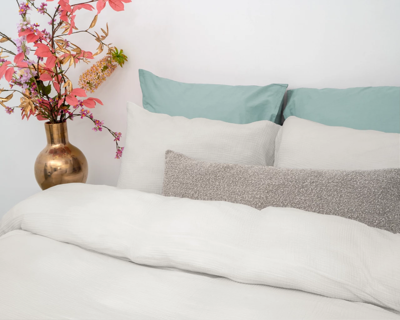 Dankzij de ademende en vochtregulerende eigenschappen voelt het dekbedovertrek koel in de zomer en behaaglijk in de winter. De combinatie van mousseline en perkal katoen zorgt voor optimaal slaapcomfort gedurende alle seizoenen.