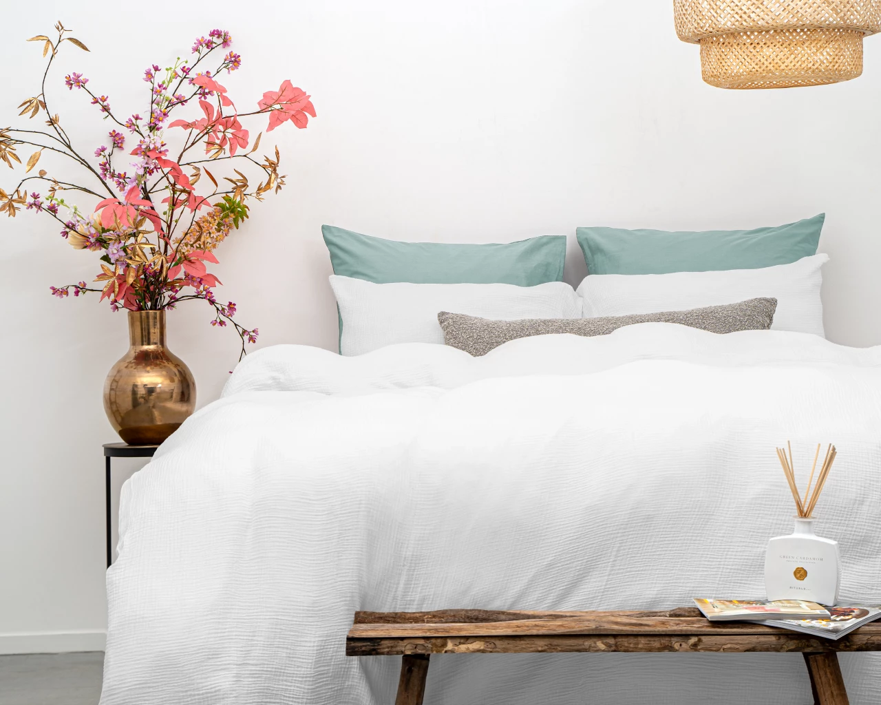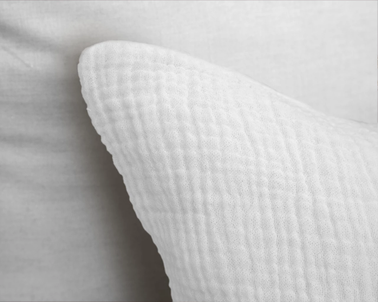 De frisse witte kleur en subtiele mousseline structuur zorgen voor een luxe en serene uitstraling in elke slaapkamer.