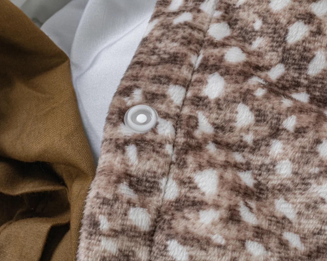 De bovenzijde bestaat uit 100% fluweel (200 gsm) met digitale print, wat zorgt voor een superzachte en luxe textuur. De onderzijde van 100% katoen voelt ademend en comfortabel aan en bevordert een prettig slaapklimaat.