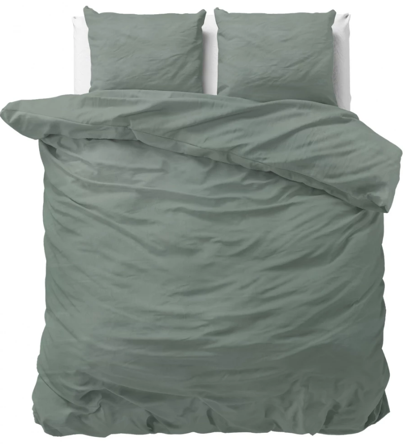 Dekbedovertrek Stone Washed Uni Groen - Katoen
