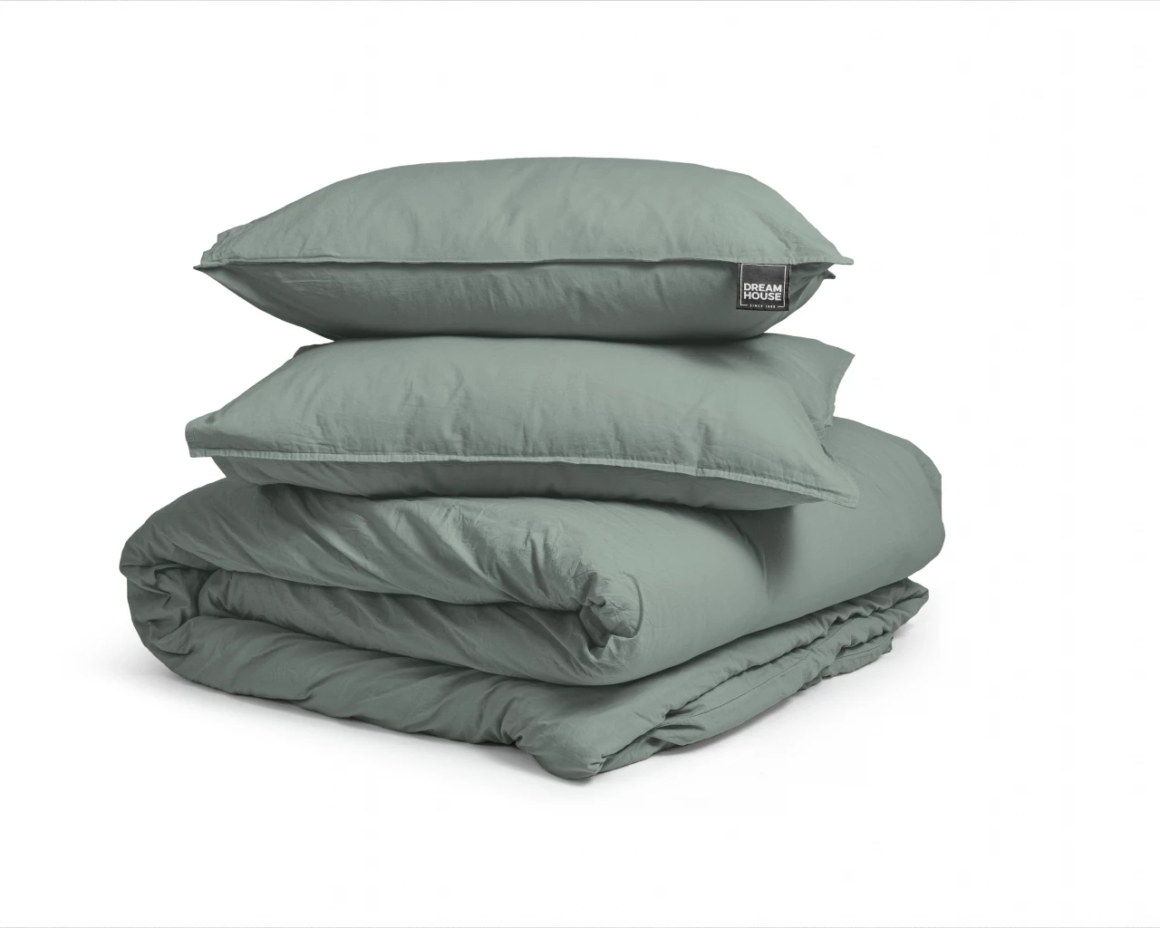 Het Dreamhouse Stone Washed Uni Groen dekbedovertrek heeft een natuurlijke en rustgevende uitstraling dankzij de zachte groentint en de subtiele stone washed afwerking. Het effen design krijgt door de licht gewassen structuur een stijlvolle, stoere en moderne look die perfect past in een serene slaapkamer.