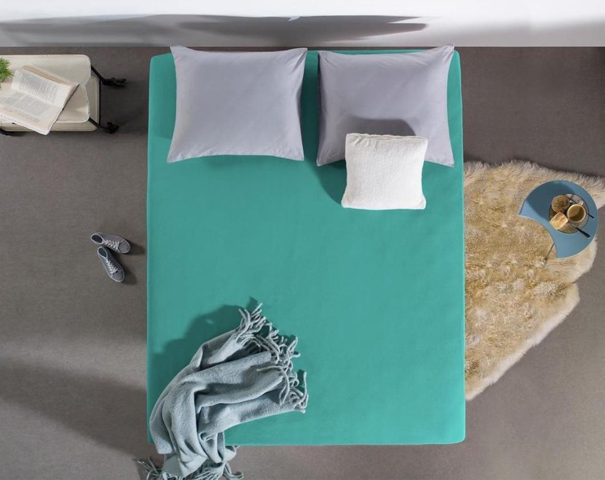 Het hoeslaken is beschikbaar in verschillende kleuren en maten.