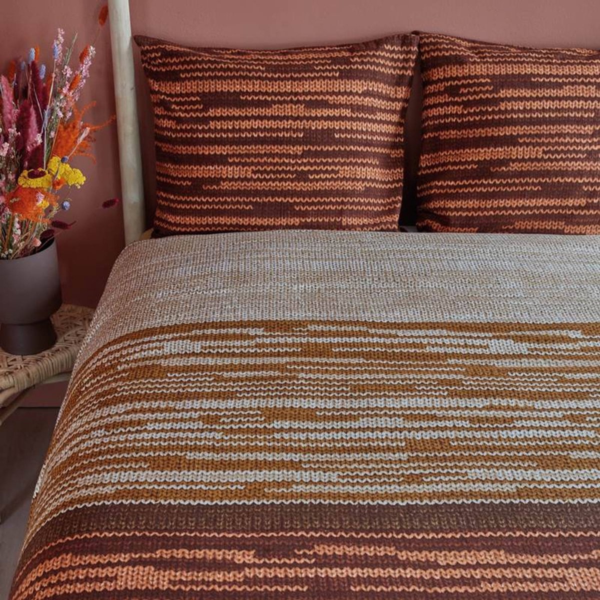 Het grove breiselprint van dekbedovertrek geeft een heerlijk winters gevoel. Het dessin bestaat uit een vlechtwerk van een grof breisel. De kleuren grijs, beige, bruin en antraciet wisselen elkaar af in de banen. Maak je bed het middelpunt van de slaapkamer!