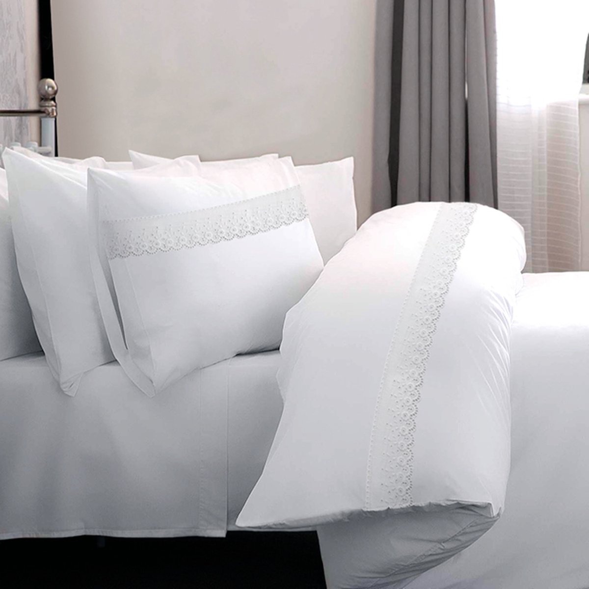 Lakenset Geborduurd Vienna Wit - Flanel