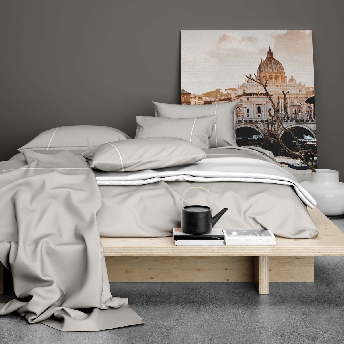 Lakenset Duchesse Grijs/Wit - Flanel
