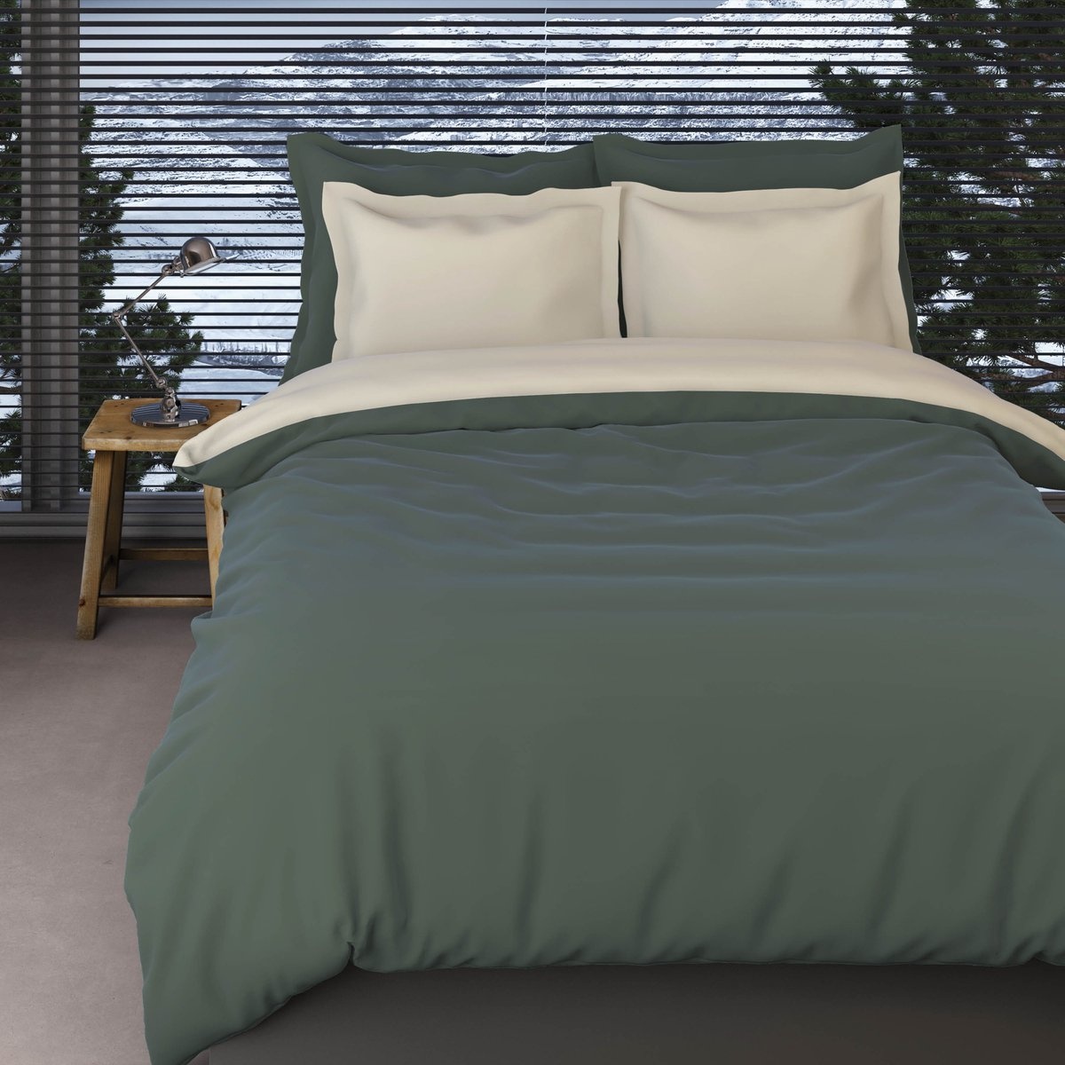 Lakenset Uni Comtesse Groen/Creme - Flanel