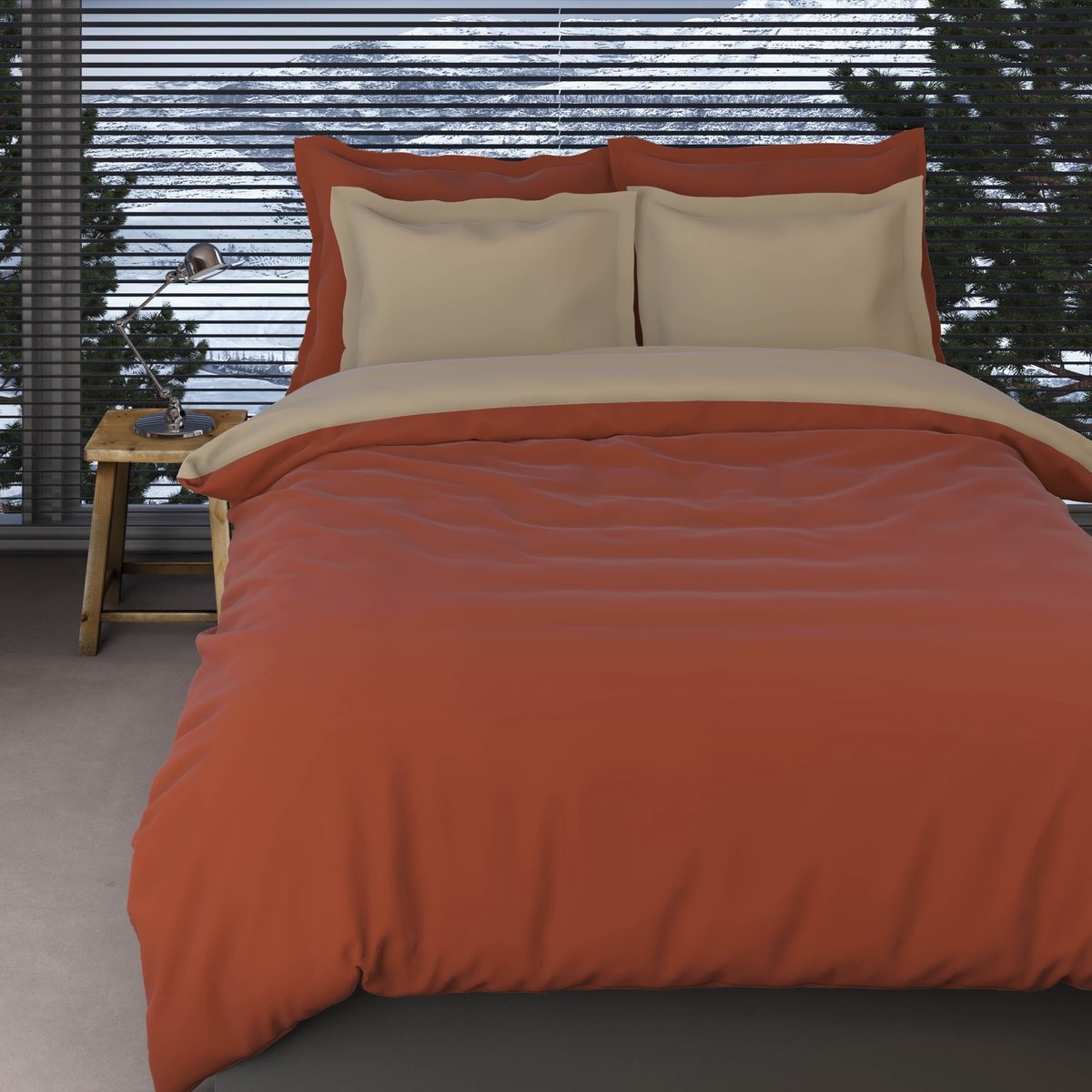 Lakenset Uni Comtesse Rood/Zand - Flanel