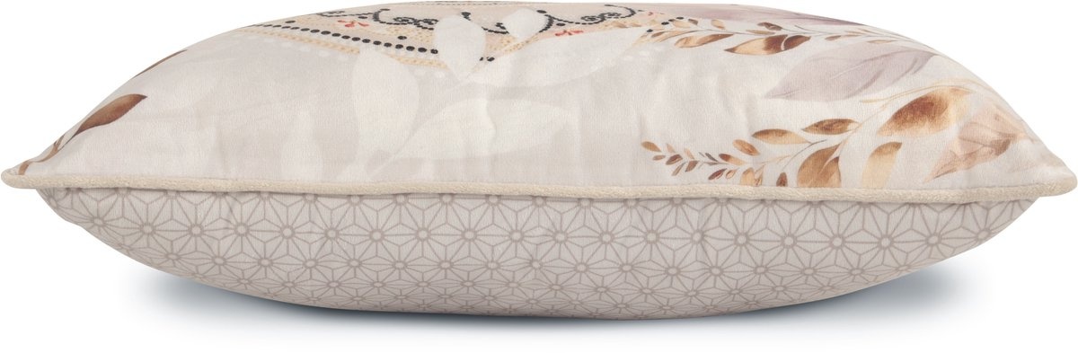 - De achterkant heeft een rustige print, waardoor de sierkussen tweezijdig te gebruiken is