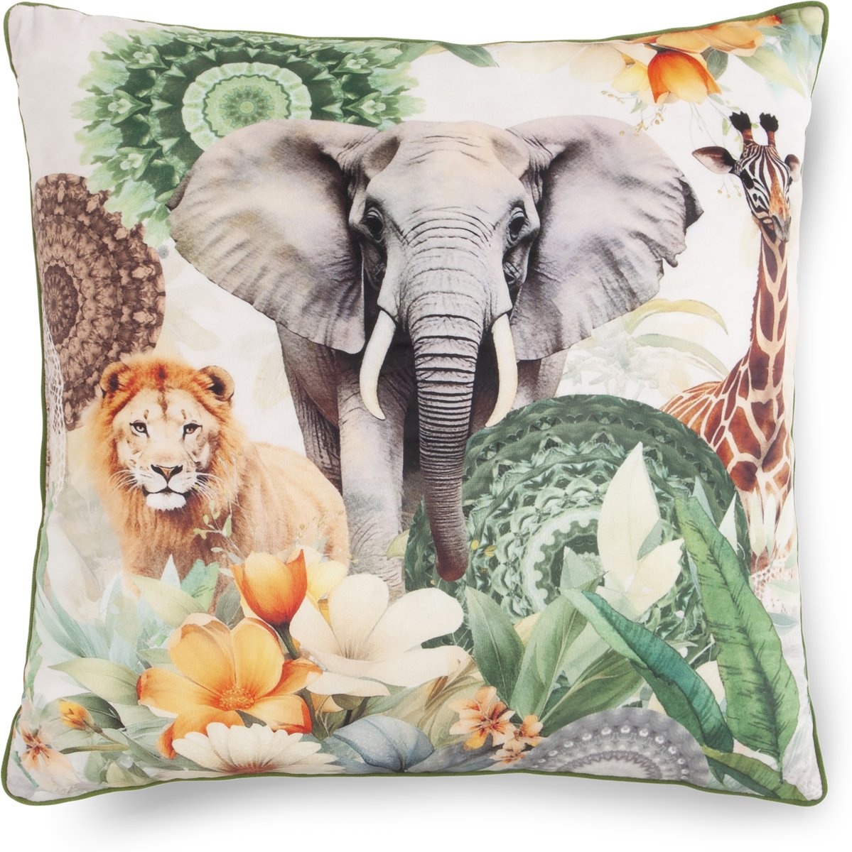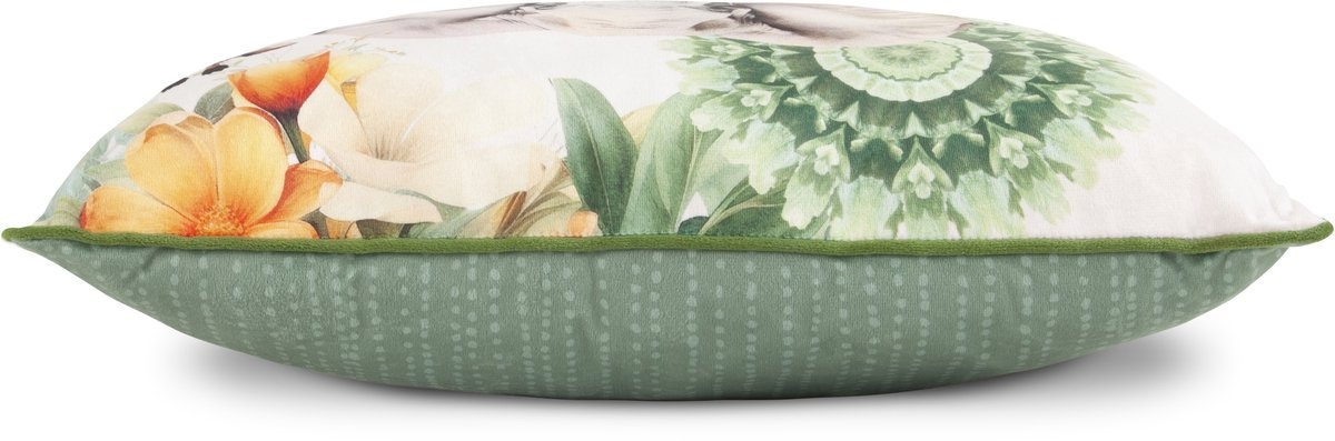 - De achterkant heeft een rustige print, waardoor de sierkussen tweezijdig te gebruiken is