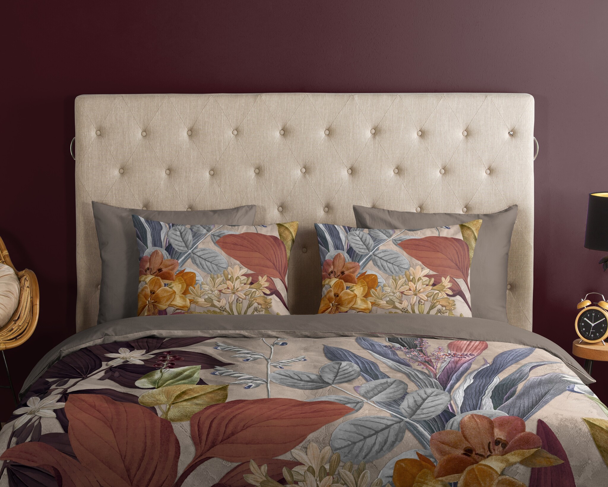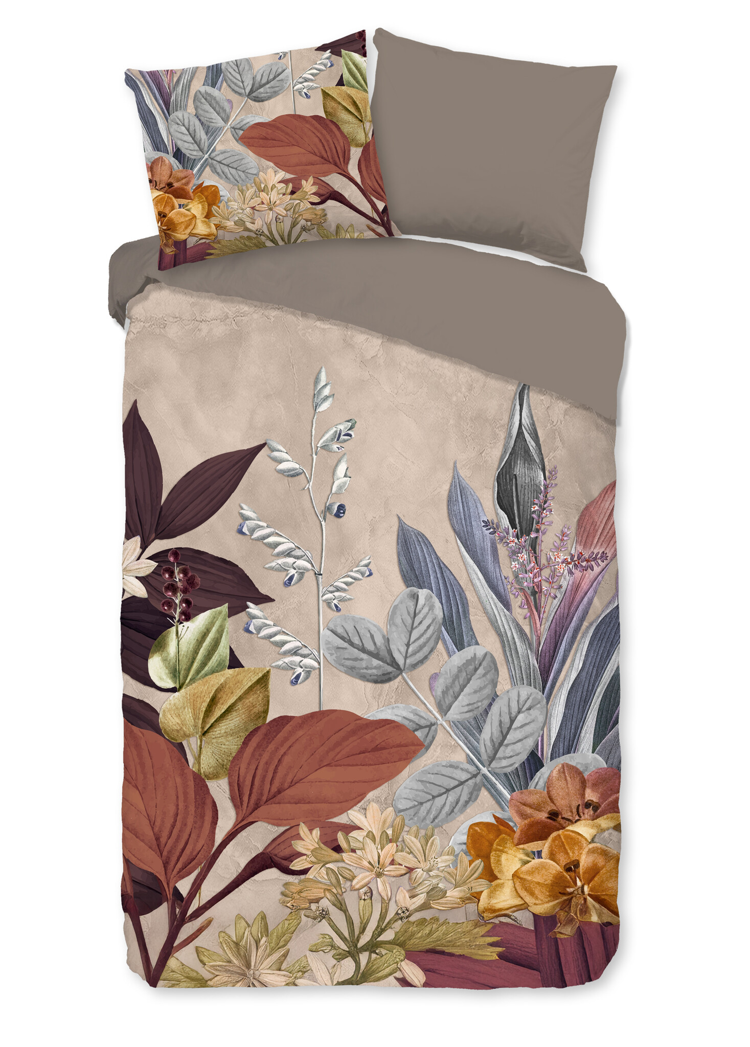 Het Good Morning Bailey zand dekbedovertrek heeft een sfeervol dessin met grote bladeren en botanische vormen in warme aardetinten zoals zand, bruin en gedempt groen. Het ontwerp geeft de slaapkamer een rustige, natuurlijke uitstraling en past perfect binnen de bladeren dekbedovertrekken categorie.