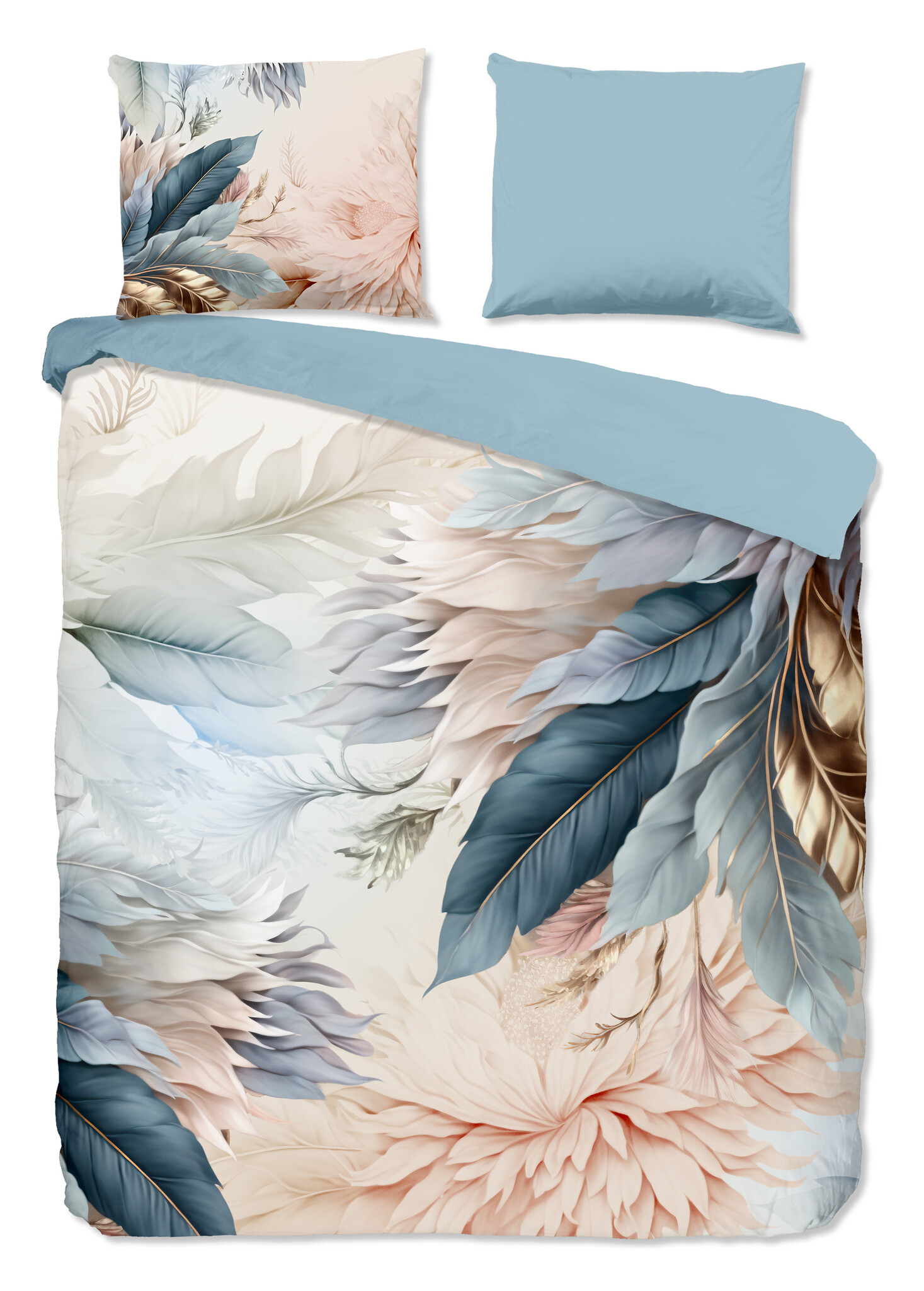 Het Good Morning Diore multi dekbedovertrek heeft een verfijnd dessin met grote, elegante bladeren in zachte tinten blauw, beige en crème. De combinatie van natuurlijke vormen en subtiele kleurovergangen geeft het overtrek een rustige, luxe uitstraling. Diore multi is daarmee een stijlvolle keuze binnen de bladeren dekbedovertrekken categorie.