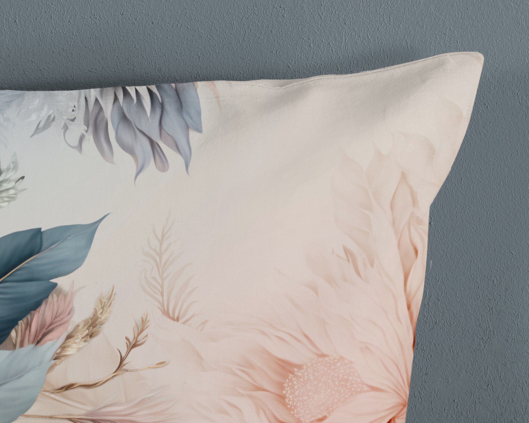 De achterzijde is uitgevoerd in een effen bijpassende blauwtint die zorgt voor balans en rust. Zo wissel je eenvoudig tussen een uitgesproken botanische look en een kalmere uitstraling.