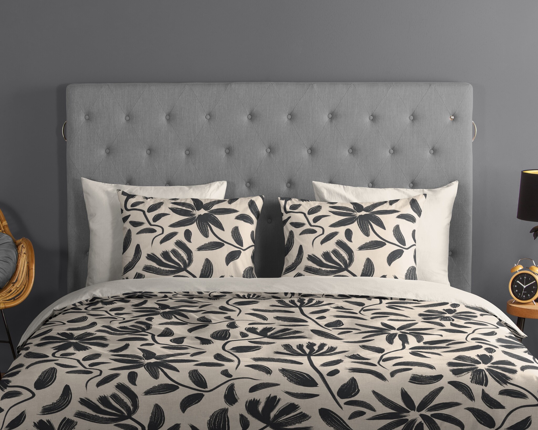 Het Good Morning Emilia ecru dekbedovertrek heeft een verfijnd bloemendessin in een tijdloze combinatie van ecru en diep zwart. De handgetekende bloemen en bladeren zorgen voor een moderne, grafische uitstraling met een zachte, natuurlijke touch. Emilia ecru is daarmee een elegante keuze binnen de bloemen dekbedovertrekken categorie.