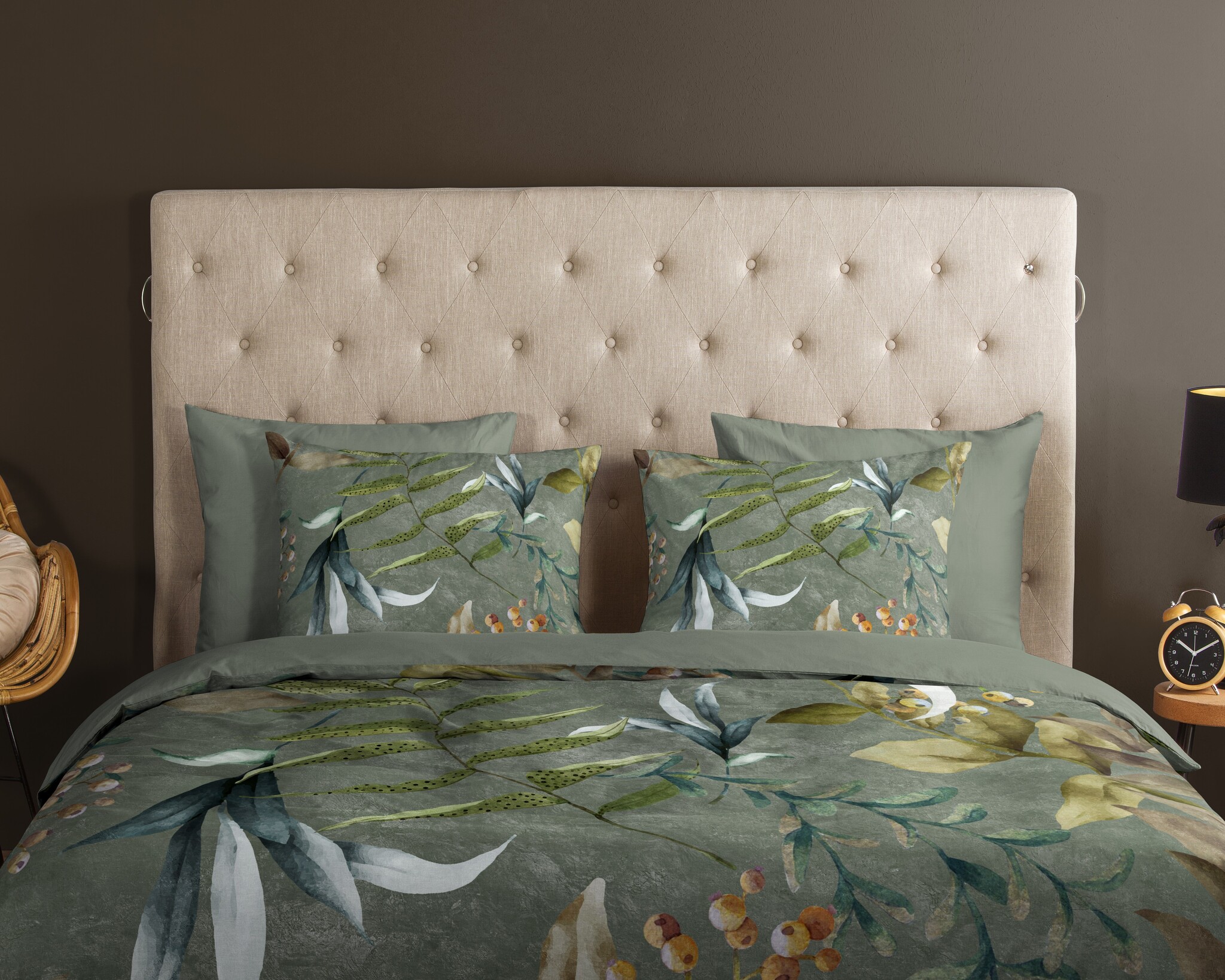 Het Good Morning Janika groen dekbedovertrek heeft een stijlvol botanisch dessin met diverse bladeren in groentinten, gecombineerd met subtiele aardse accenten. De natuurlijke kleuren en het speelse patroon zorgen voor een frisse en rustgevende uitstraling. Janika groen is daarmee een prachtige keuze binnen de bladeren dekbedovertrekken categorie.