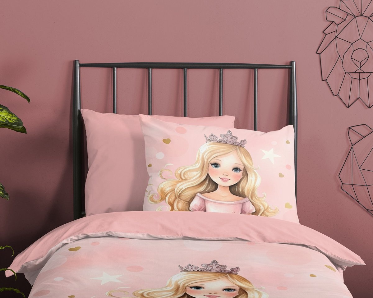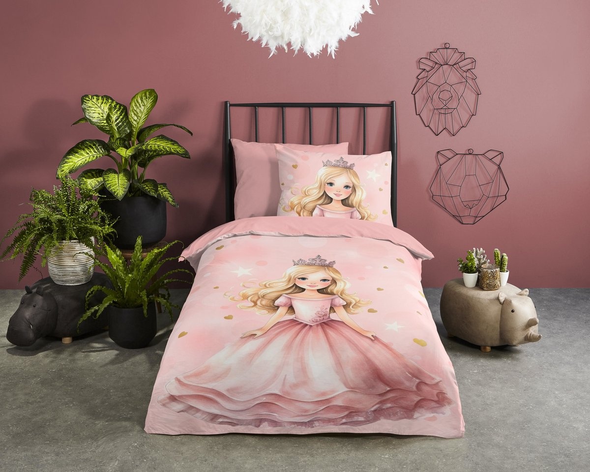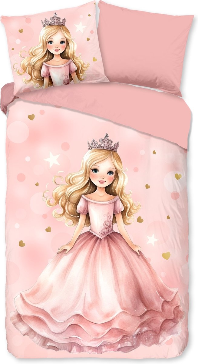 Het Good Morning Kids Amelie Roze dekbedovertrek brengt een sprookjesachtige sfeer in de kinderkamer. Het verfijnde prinsessen dessin met zachte roze tinten, sterren en hartjes zorgt voor een dromige en elegante uitstraling waarin fantasie en rust samenkomen.