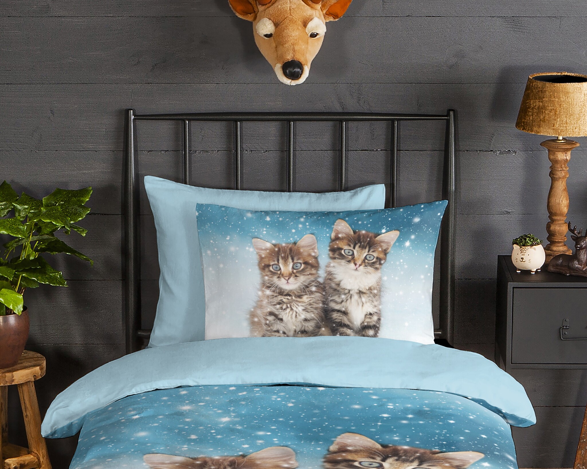De combinatie van de realistische kattenprint en de kalme blauwtinten maakt dit een prachtig katten dekbedovertrek voor jonge dierenliefhebbers. Dankzij het speelse maar zachte design past dit model moeiteloos binnen diverse kinderkamers en sluit het perfect aan bij een stijlvol kinderen dekbedovertrek.