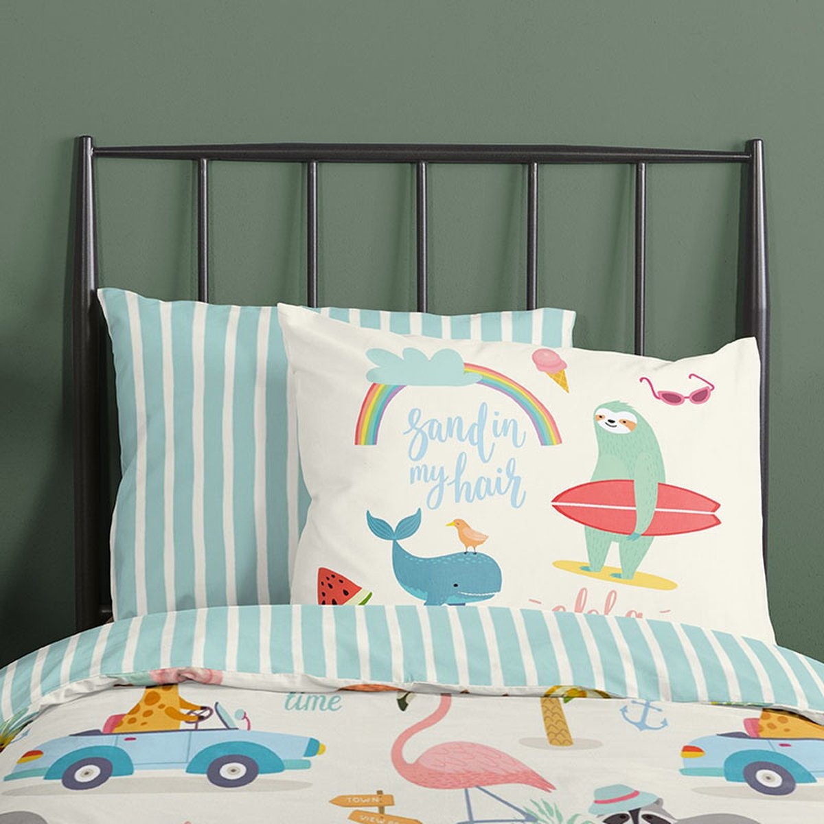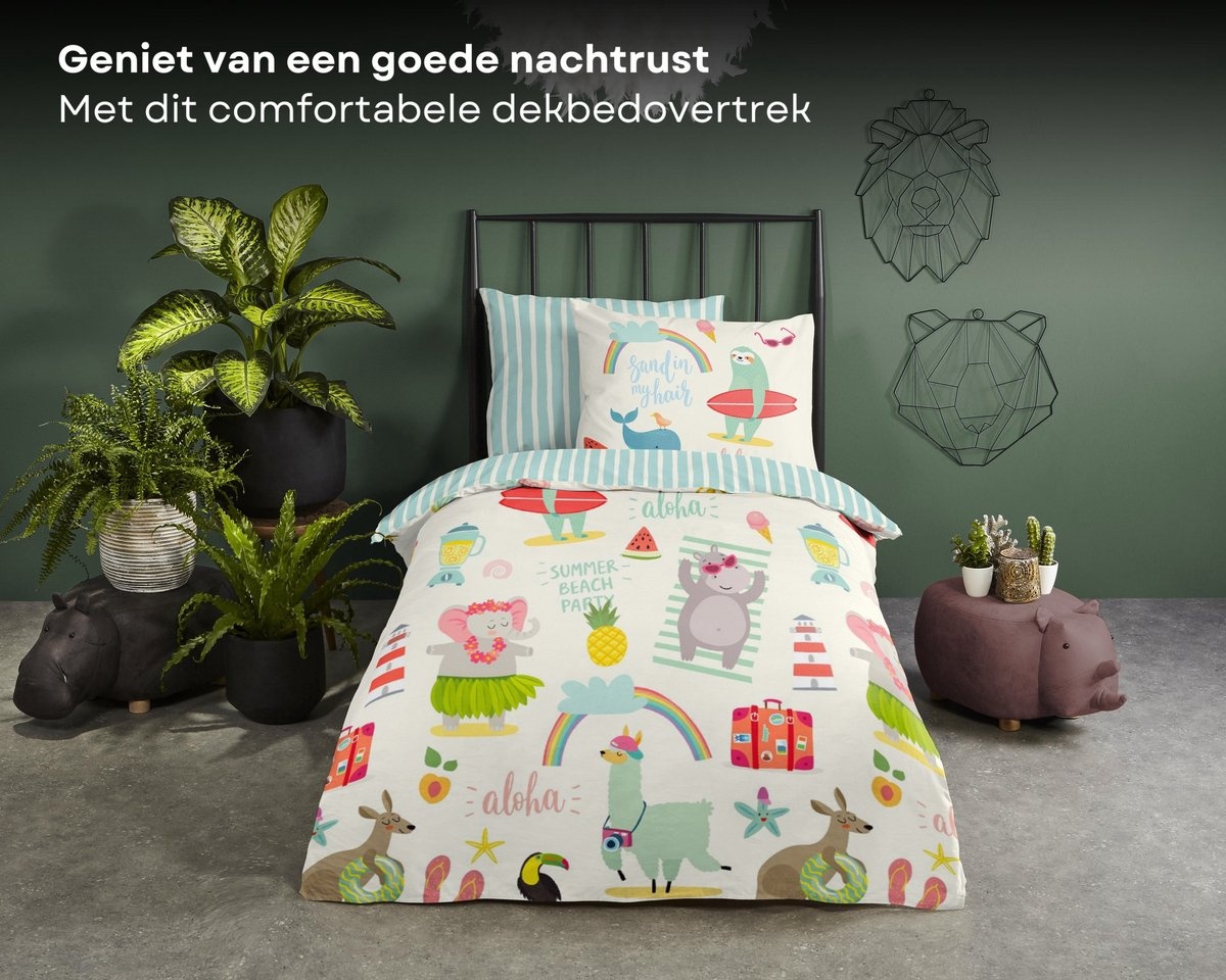 Met het Good Morning Kids Holiday Multi dekbedovertrek haal je een vrolijke vakantiesfeer in huis. Het speelse patroon met dieren, stranditems en zomerse details zorgt voor een energieke en gezellige uitstraling waar kinderen dol op zijn.