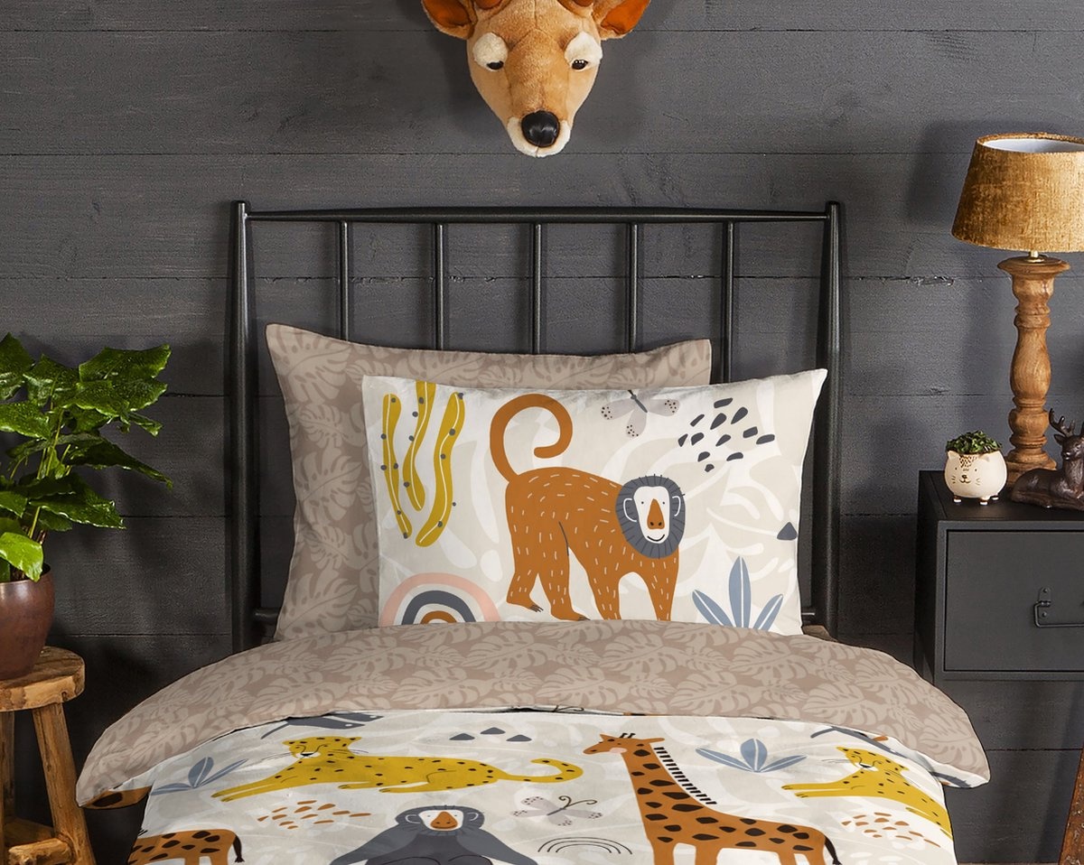 De speelse illustraties en natuurlijke kleuren maken dit dekbedovertrek levendig zonder onrustig te zijn. Perfect voor kinderen die houden van dieren en avontuur.