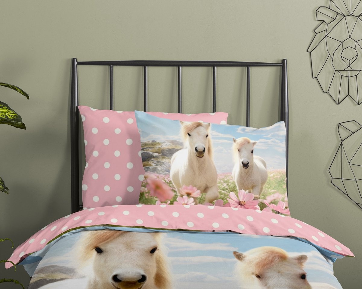 Dit kinder dekbedovetrek zorgt voor een leuke sfeer in de kinderkamer. De achterzijde heeft een andere patroon, waardoor de voorgrond extra mooi naar voren komt. De kussenslopen hebben dezelfde afbeelding, wat voor mooi geheel zorgt. Maak van het bed het middelpunt van de kinderkamer!