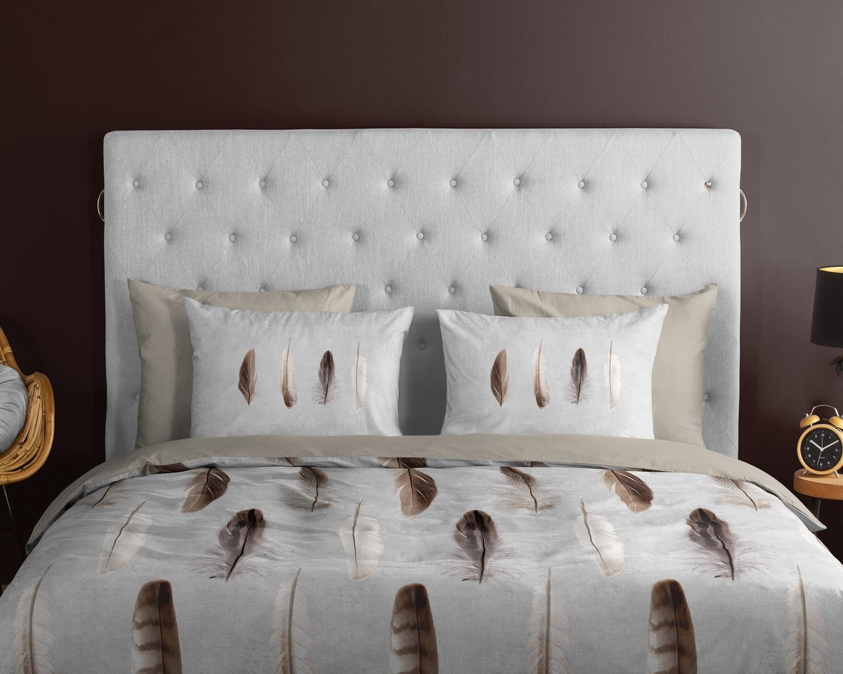 Het Good Morning Lisa Multi dekbedovertrek straalt rust en verfijning uit dankzij het subtiele verenmotief in warme, natuurlijke kleuren. De lichte achtergrond in combinatie met beige- en bruintinten zorgt voor een serene en harmonieuze uitstraling. Dit maakt Lisa Multi een perfecte keuze binnen onze veren dekbedovertrekken categorie.