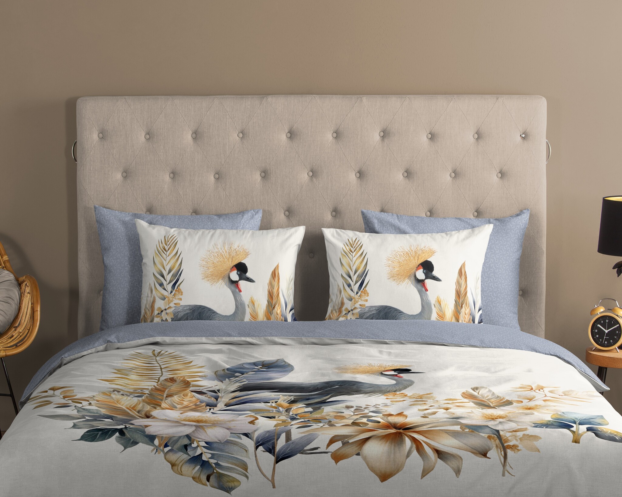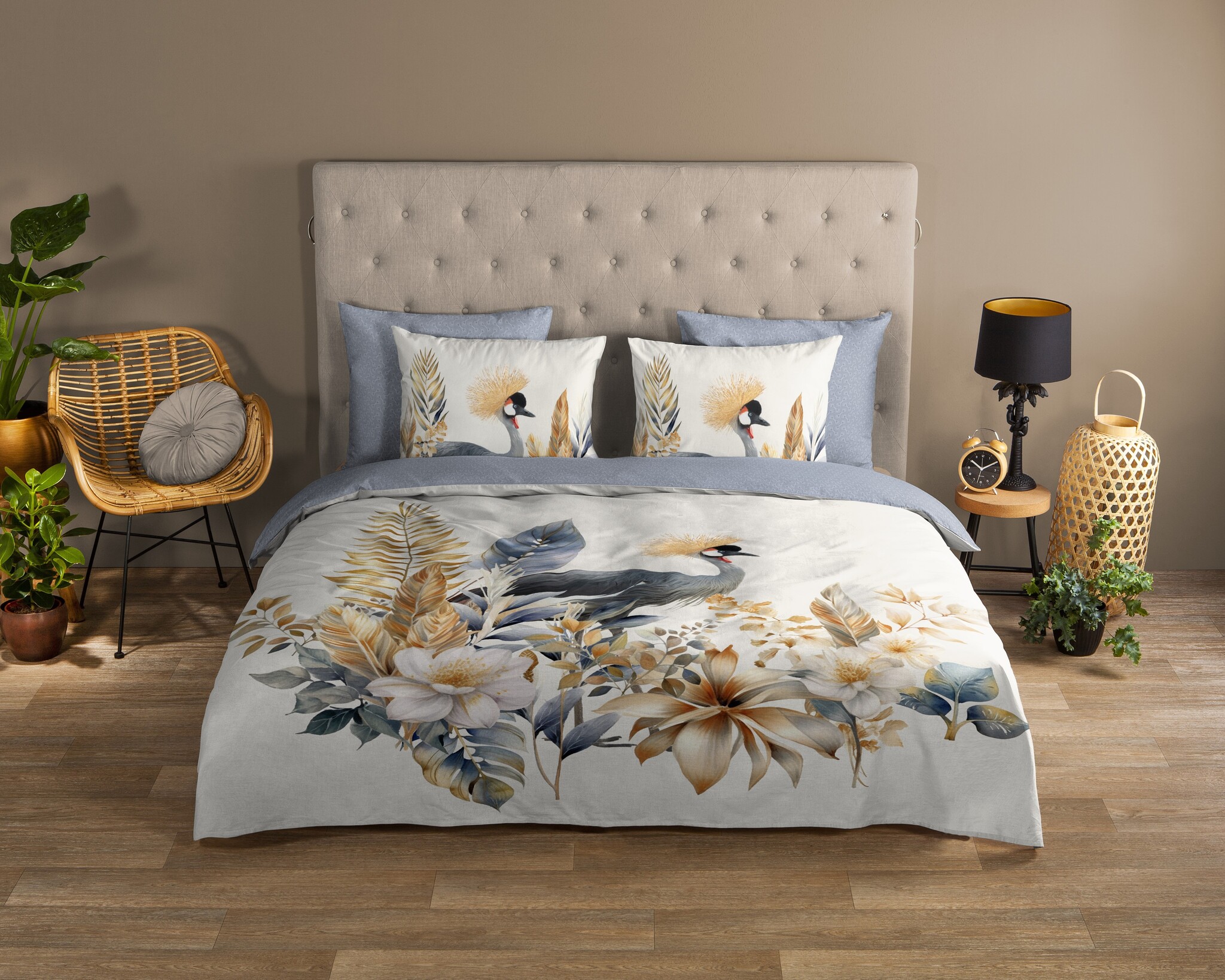 De achterzijde is uitgevoerd in een effen, bijpassende neutrale tint. Zo wissel je eenvoudig tussen een speelse bloemenprint en een rustige basis in de slaapkamer.