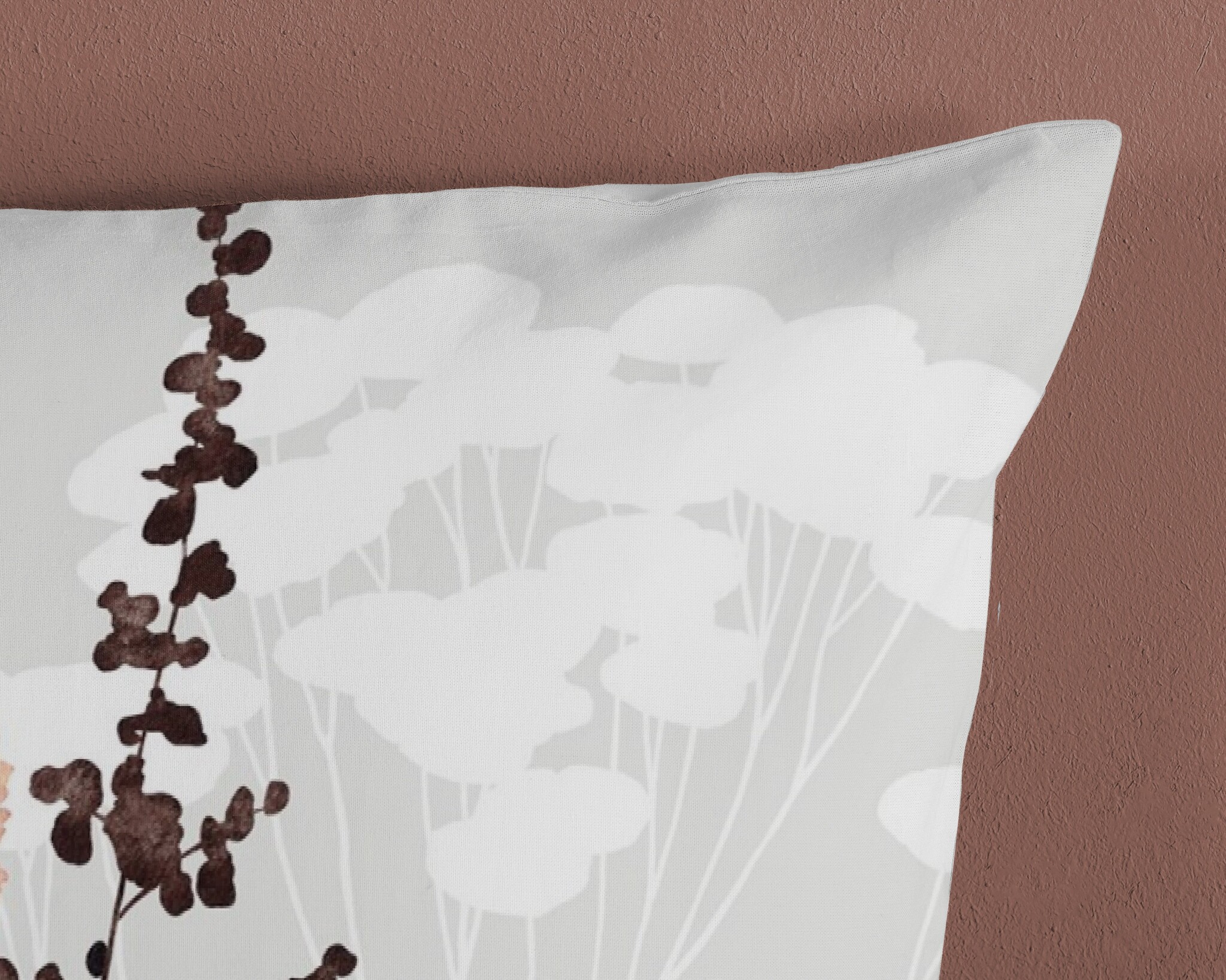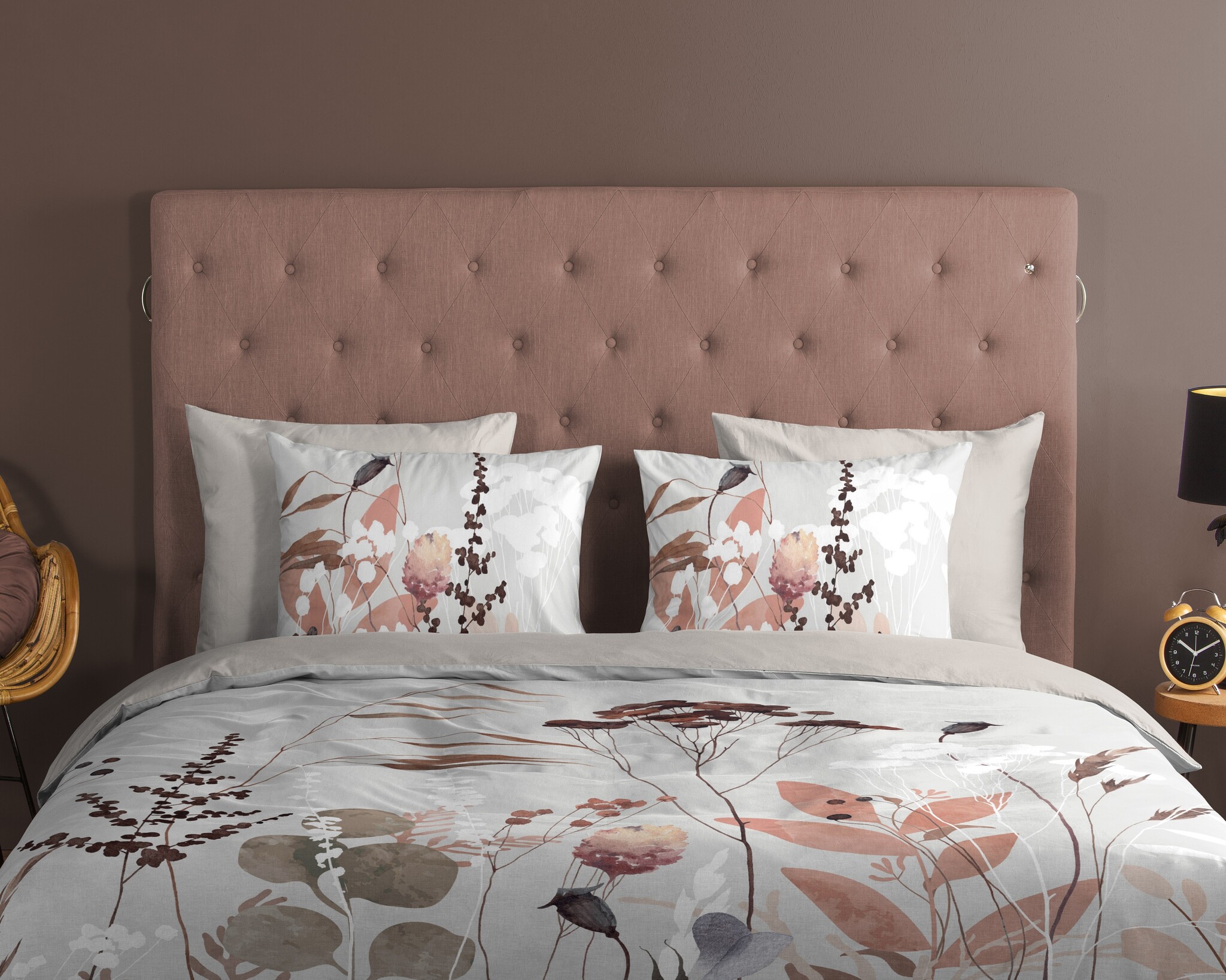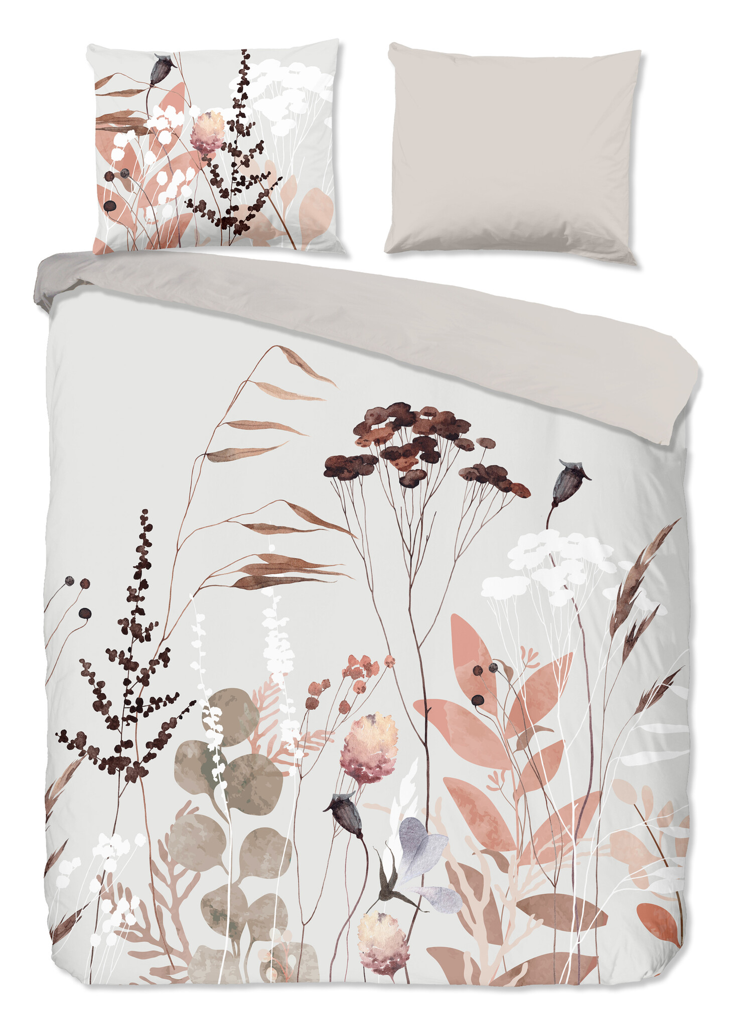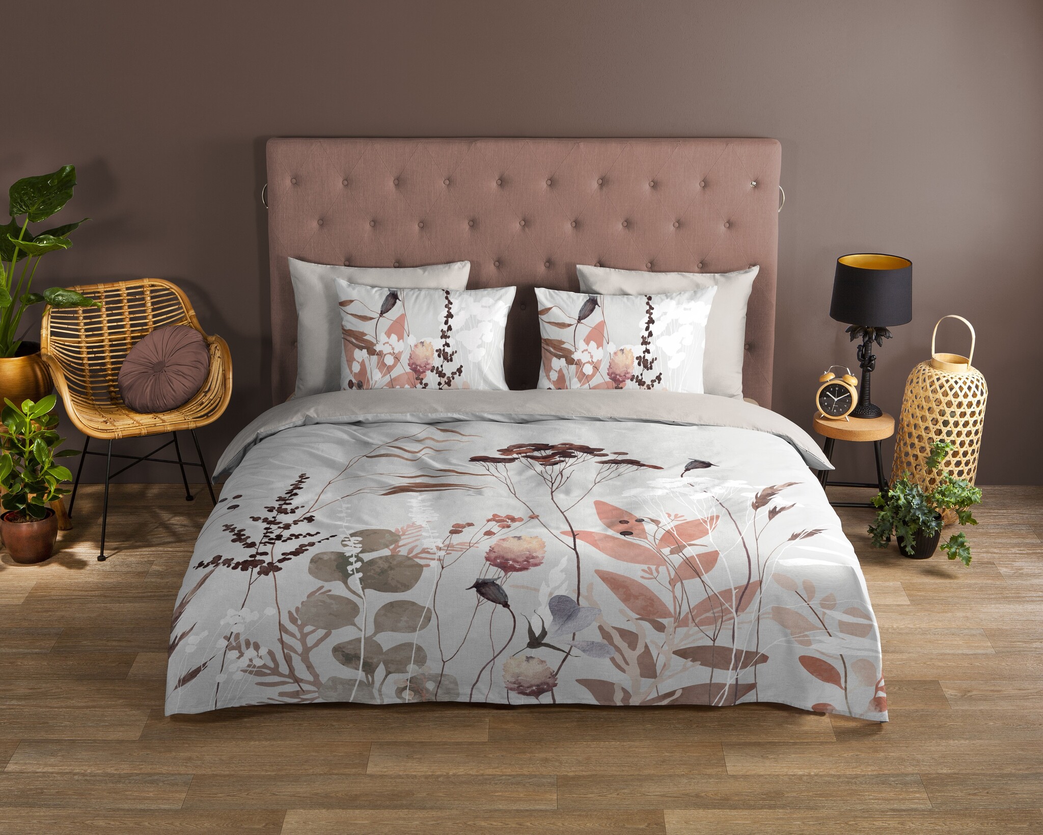 Het Good Morning Moya grijs dekbedovertrek heeft een verfijnd bloemendessin met sierlijke veldbloemen en takken in zachte grijs-, beige- en poedertinten. De aquarelachtige stijl en luchtige compositie geven het overtrek een rustige, natuurlijke uitstraling. Moya grijs is daarmee een prachtige keuze binnen de bloemen dekbedovertrekken categorie.