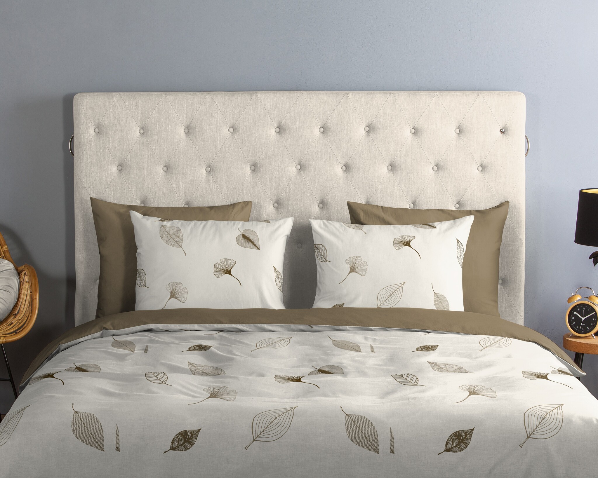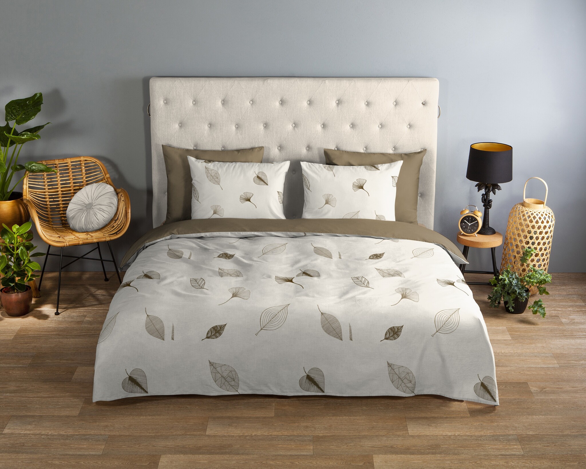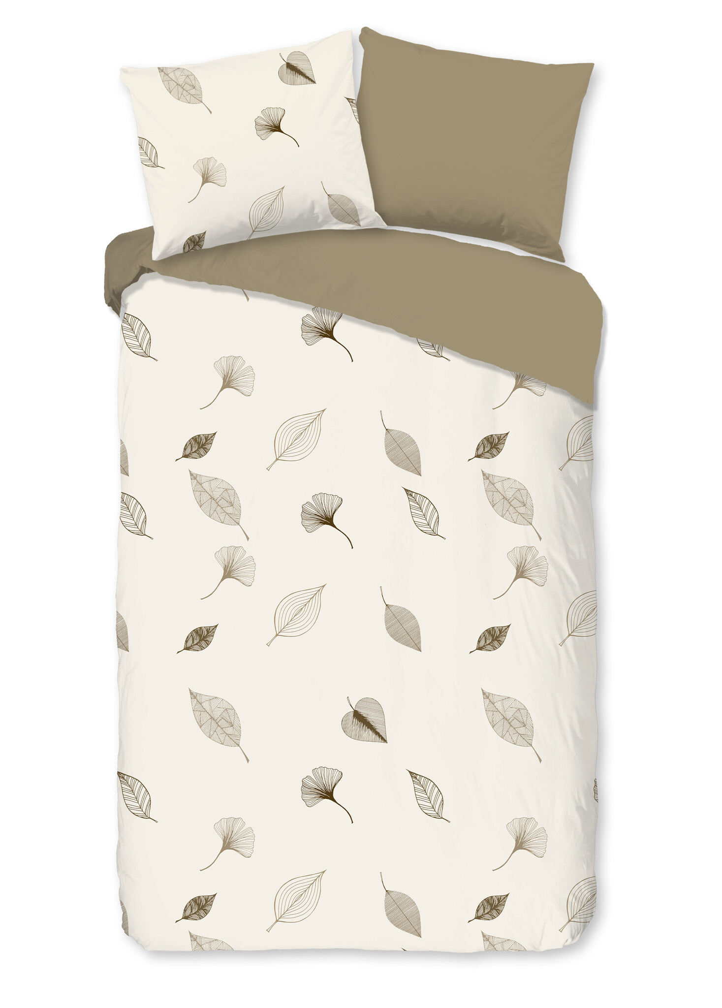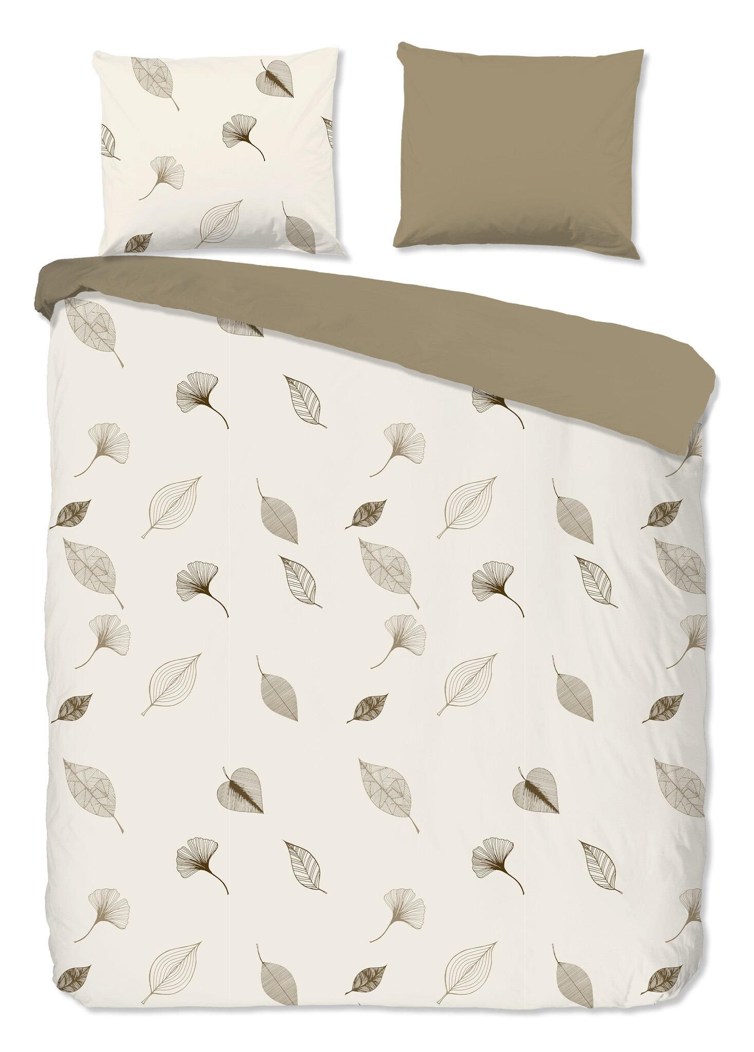 Het Good Morning Saar ecru dekbedovertrek heeft een verfijnd bladerdessin met verschillende bladsoorten in zachte, natuurlijke tinten zoals zand, taupe en lichtbruin. Het minimalistische patroon geeft het overtrek een rustige en elegante uitstraling. Saar ecru past perfect binnen de bladeren dekbedovertrekken categorie.