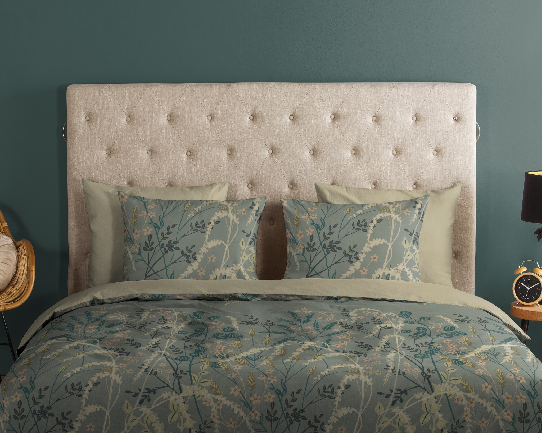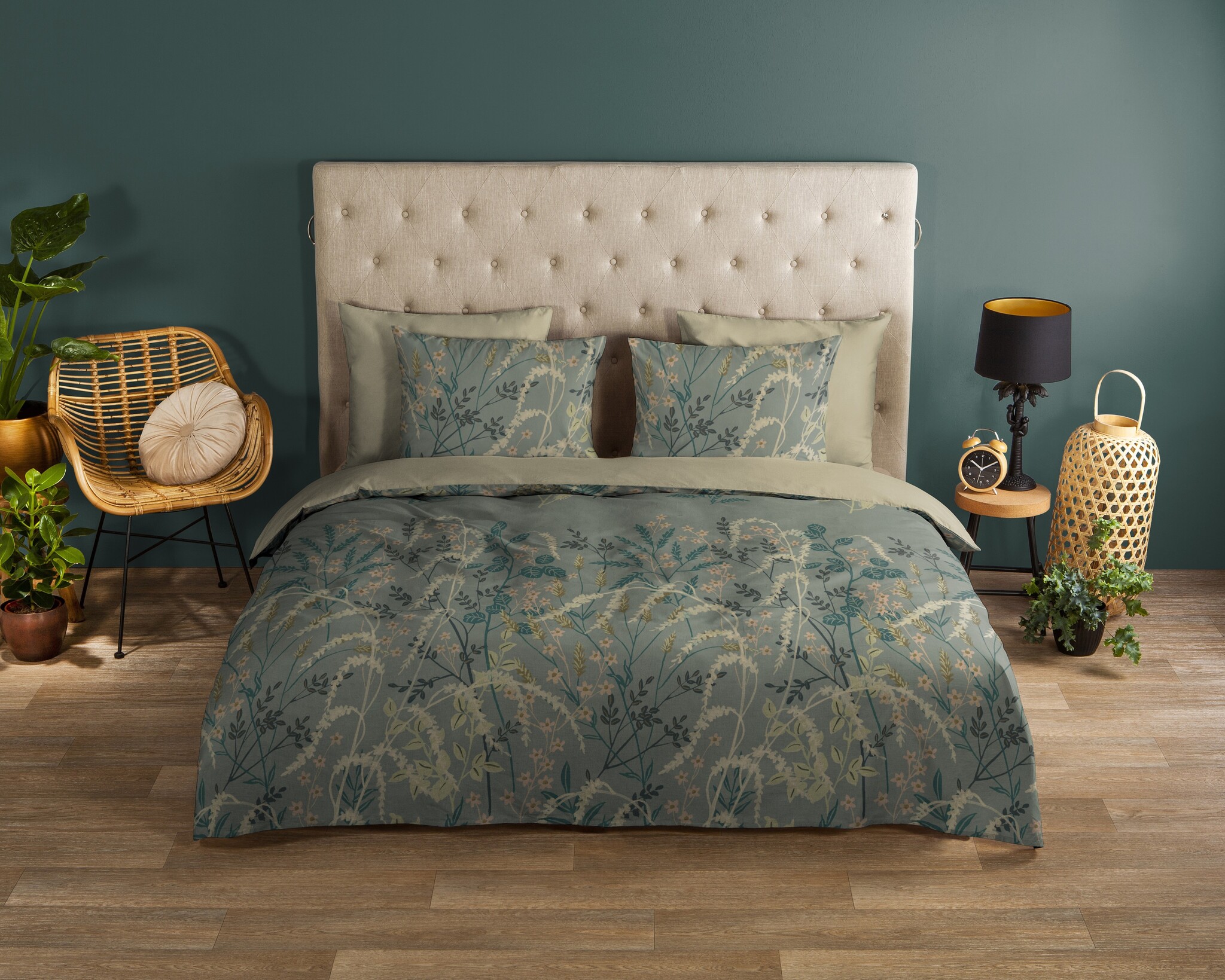 Het Good Morning Silve groen dekbedovertrek heeft een verfijnd botanisch patroon met sierlijke takken, bladeren en subtiele bloemen in zachte groentinten. De natuurlijke kleuren geven de slaapkamer een kalme en harmonieuze sfeer. Silve groen past perfect binnen de natuur dekbedovertrekken categorie.
