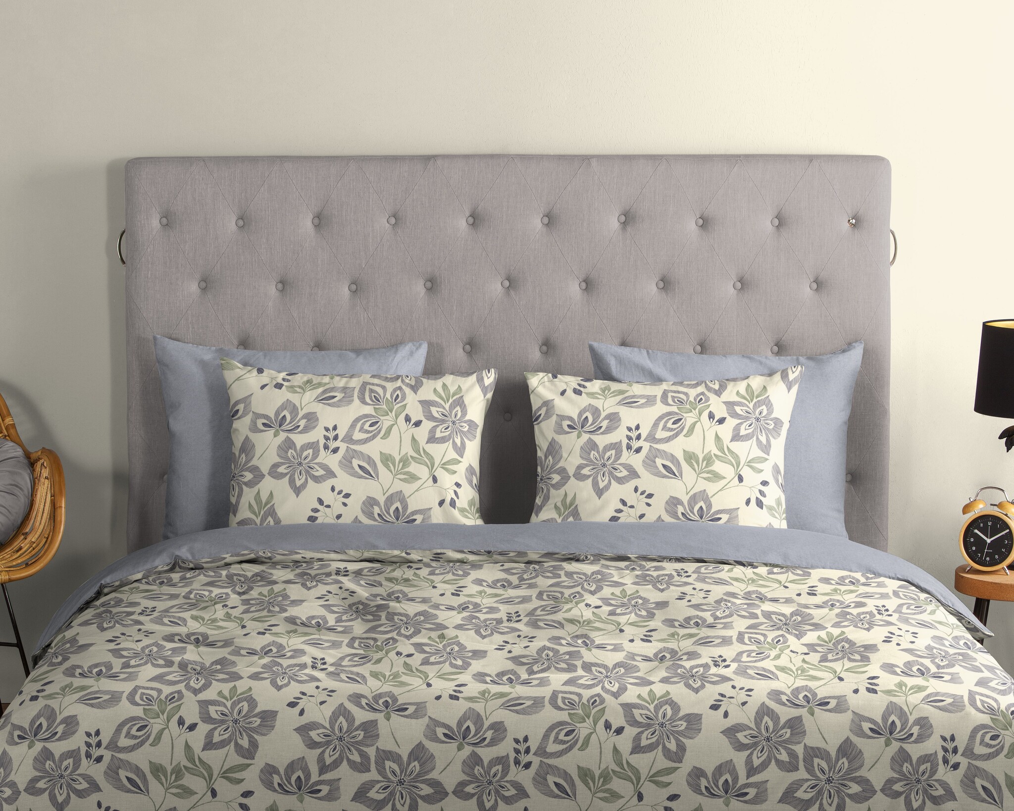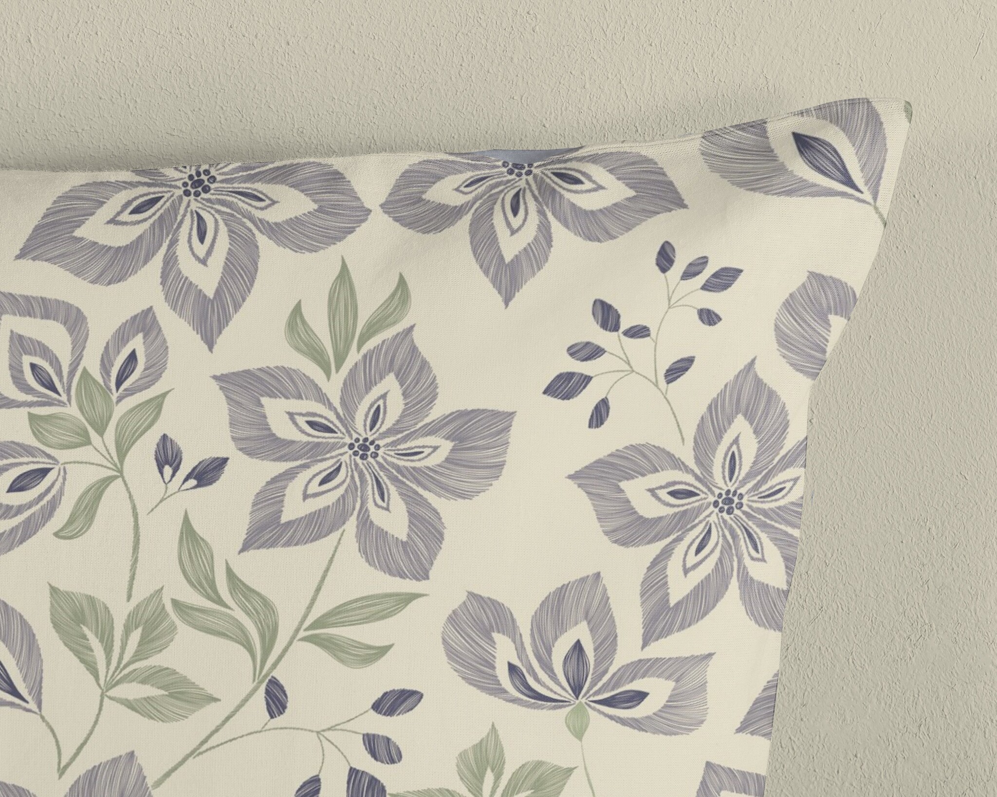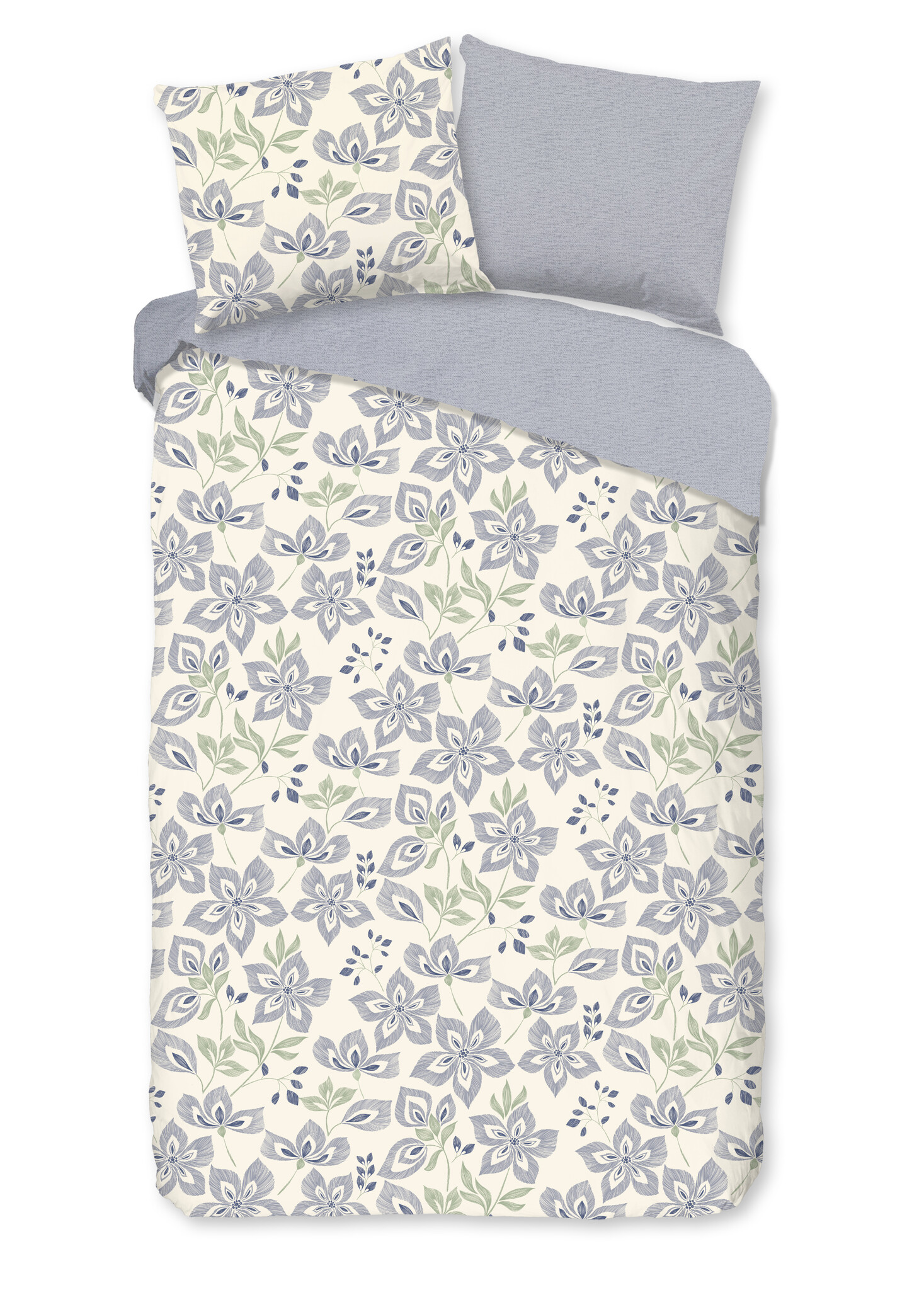 Het Good Morning Vesper ecru dekbedovertrek heeft een verfijnd dessin met gestileerde bloemen en bladeren in zachte blauwtinten en groentinten op een lichte ecru ondergrond. Het patroon oogt fris en rustig en past perfect binnen de bloemen dekbedovertrekken categorie.