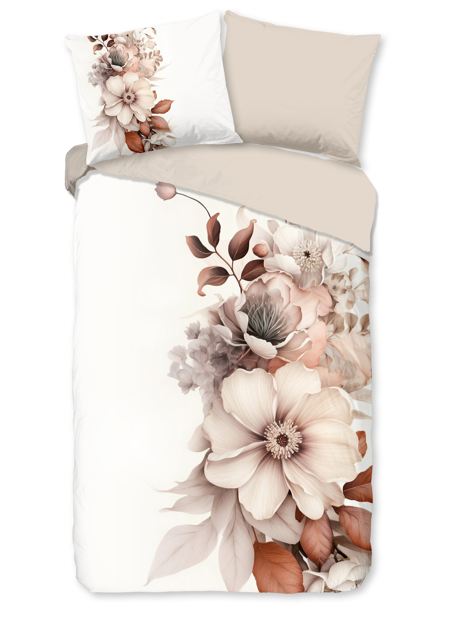 Het Good Morning Vester ecru dekbedovertrek heeft een elegant bloemendessin met grote bloemen in zachte ecru- en aardetinten. De rustige compositie en subtiele schaduwen geven het overtrek een chique en serene uitstraling. Vester ecru is daarmee een tijdloze keuze binnen de bloemen dekbedovertrekken categorie.
