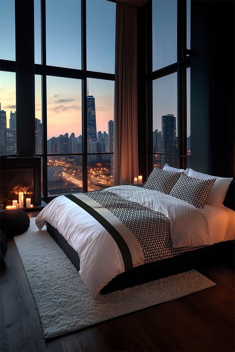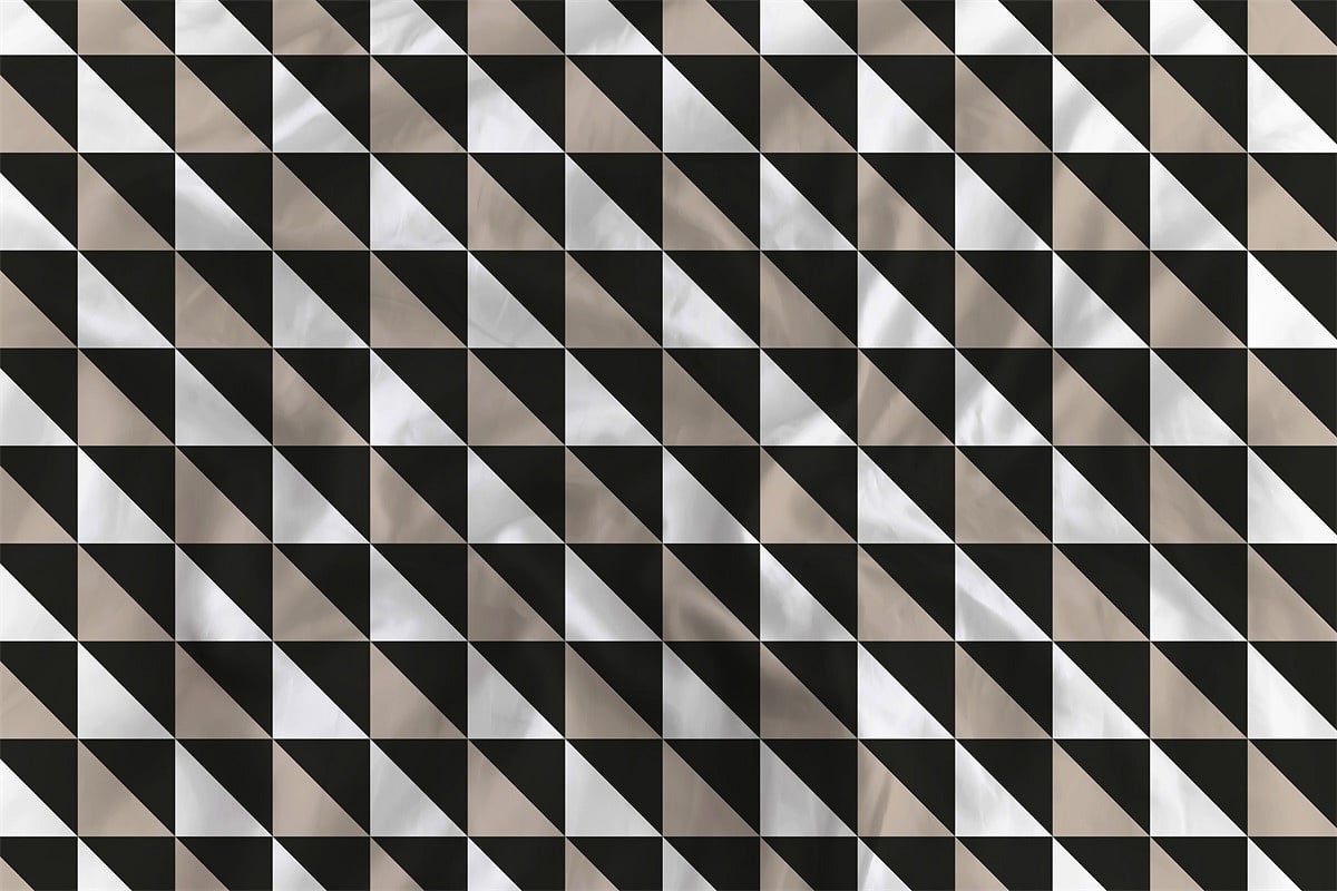 Het moderne geometrische dessin in natuurlijke tinten geeft de slaapkamer een stijlvolle en luxe uitstraling.