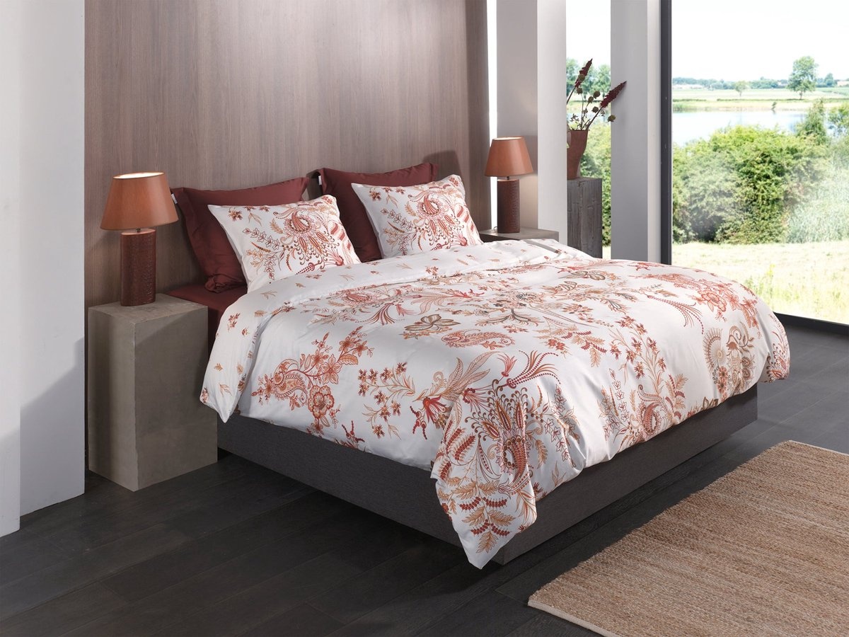 De decoratieve details en subtiele kleurcontrasten maken dit ontwerp bijzonder geschikt voor liefhebbers van een luxe oranje dekbedovertrek met een klassieke uitstraling. Het dubbelzijdige design biedt bovendien twee verschillende dessins, wat kenmerkend is voor een hoogwaardig katoensatijn dekbedovertrek met veelzijdige uitstraling.