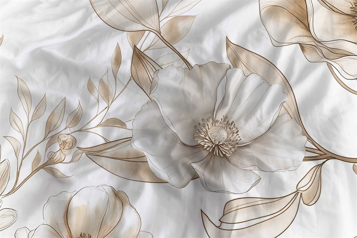 Het elegante bloemen dessin in zachte crème tinten geeft de slaapkamer een luxe, rustige en stijlvolle uitstraling.